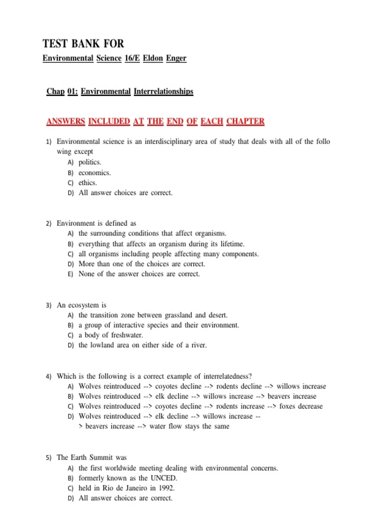 1) EnvironmentalLscienceLisLanLinterdisciplinaryLareaLofLstudyLthatLdealsLwithLallLofLtheLfollo