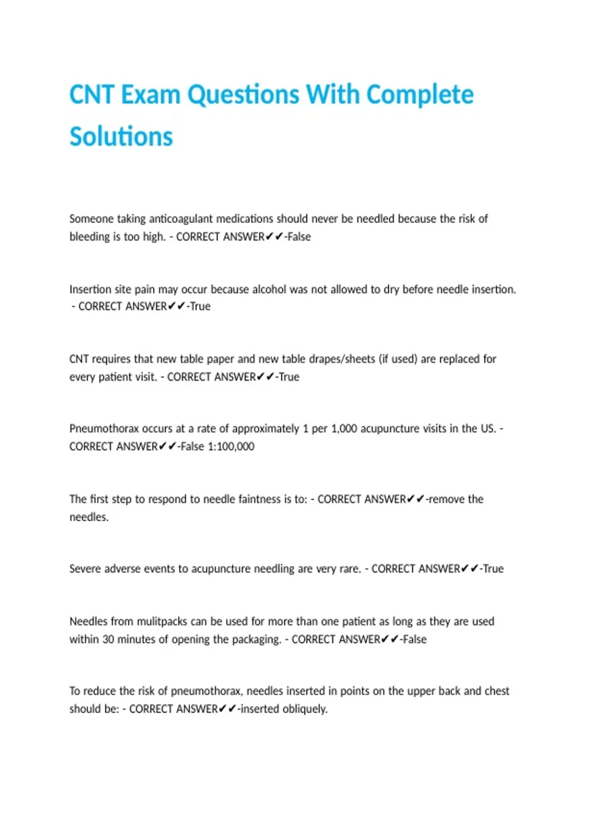 Severe |adverse |events |to |acupuncture |needling |are |very |rare. |- |CORRECT |ANSWER✔✔-True