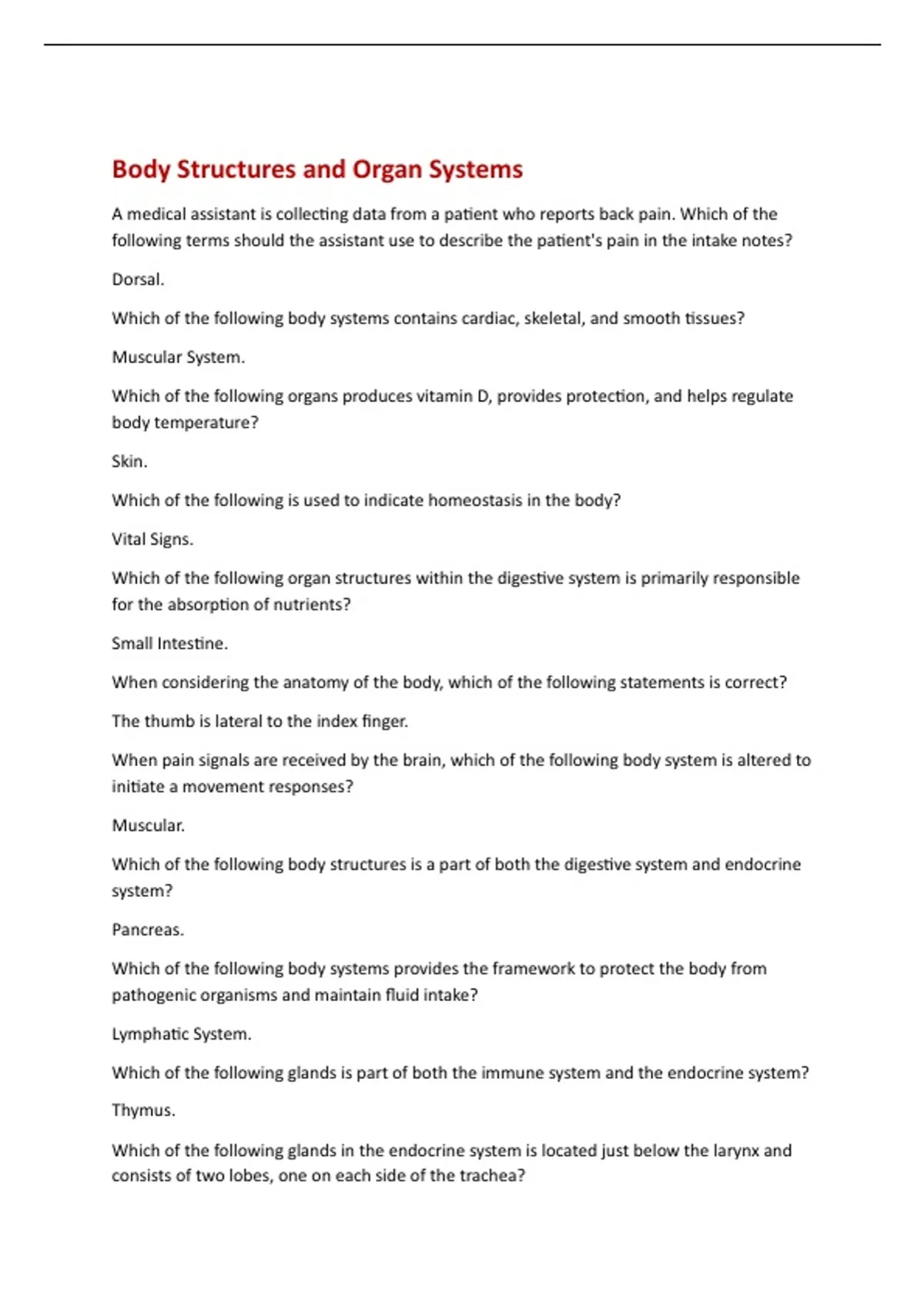 Body Structures And Organ Systems