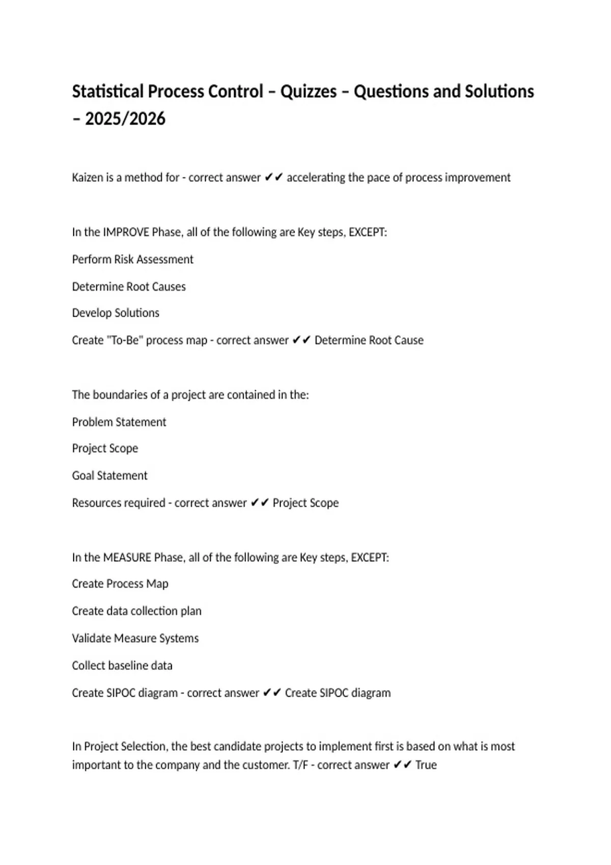 Kaizen is a method for - correct answer ✔✔ accelerating the pace of process improvement