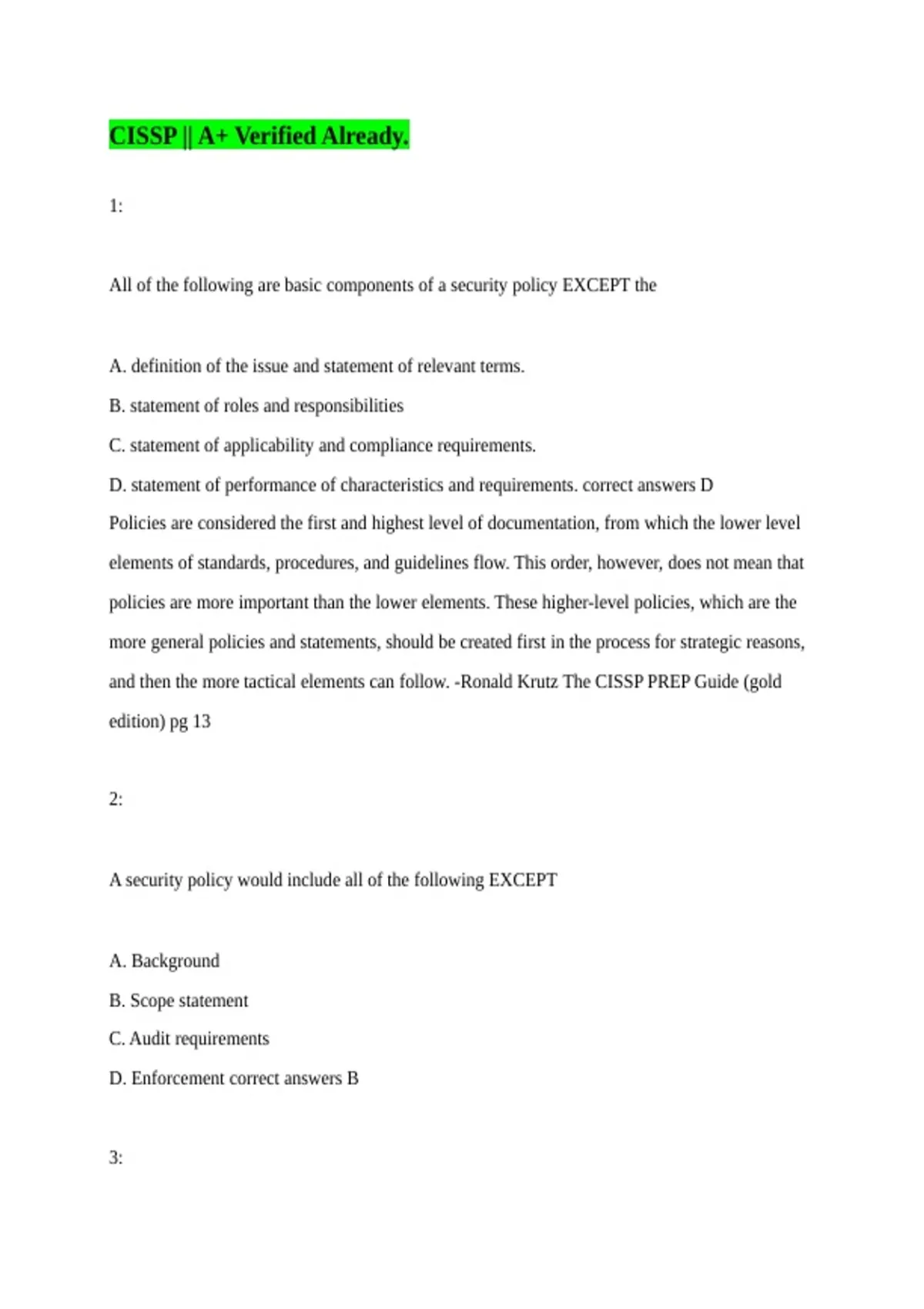 and then the more tactical elements can follow. -Ronald Krutz The CISSP PREP Guide (gold