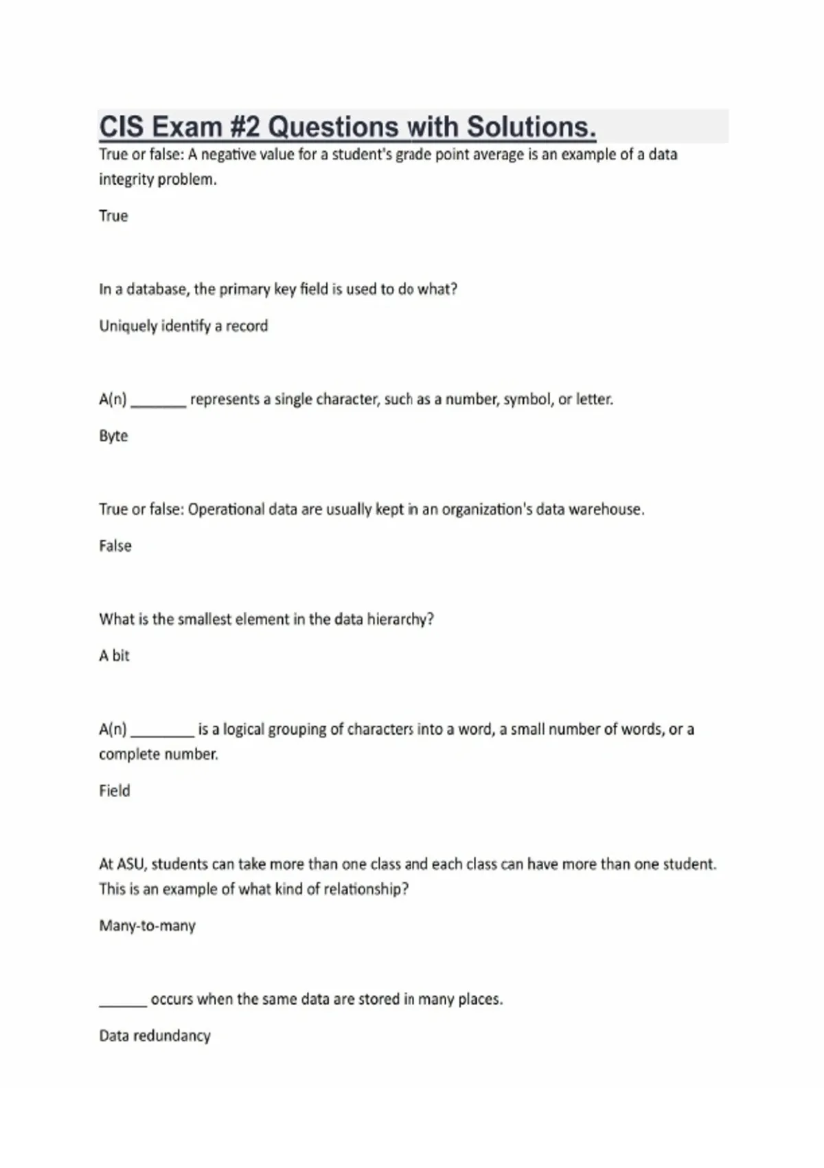 CIS Exam #2 Questions with Solutions.CIS Exam #2 Questions with Solutions.