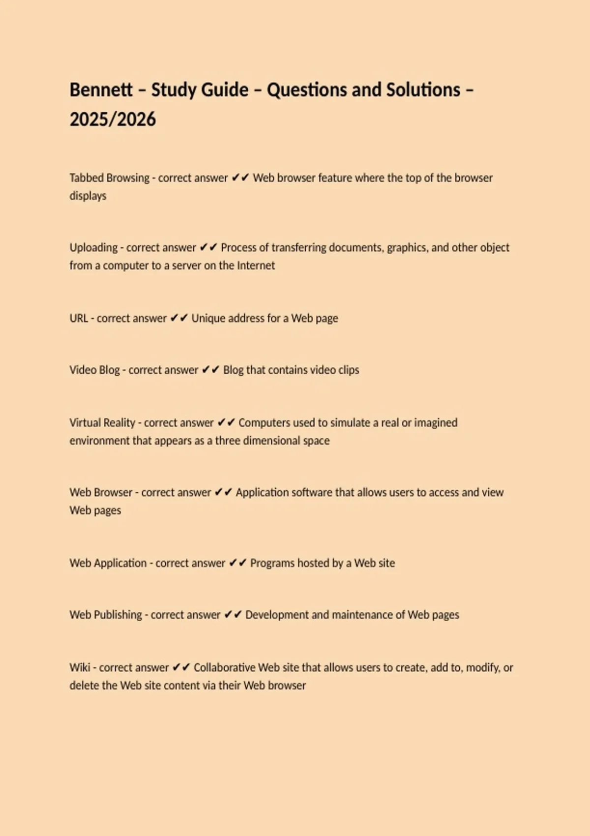 Wiki - correct answer ✔✔ Collaborative Web site that allows users to create, add to, modify, or