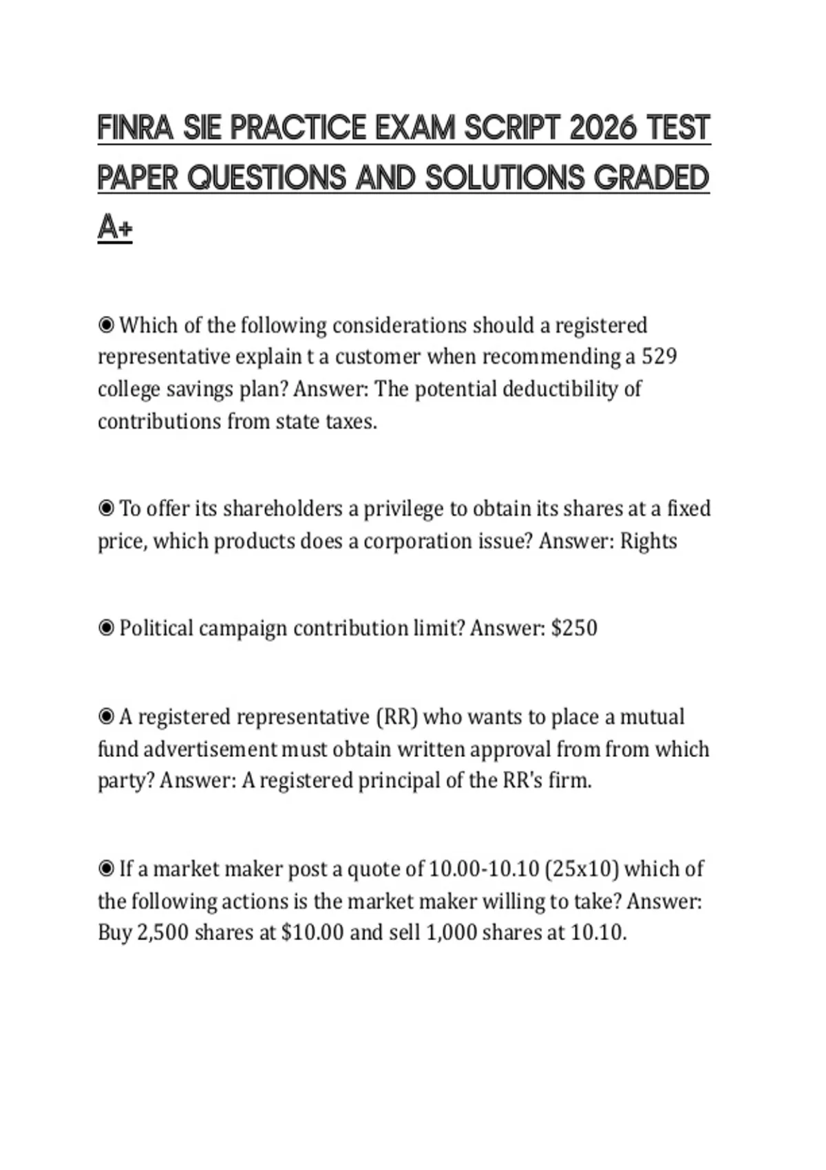 ◉ Which of the following security types provides investors with a