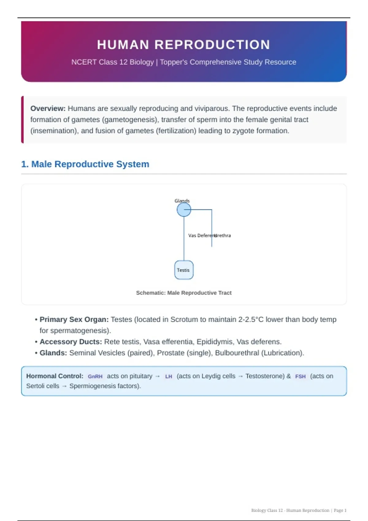 Biology Class 12 - Human Reproduction | Page 1
