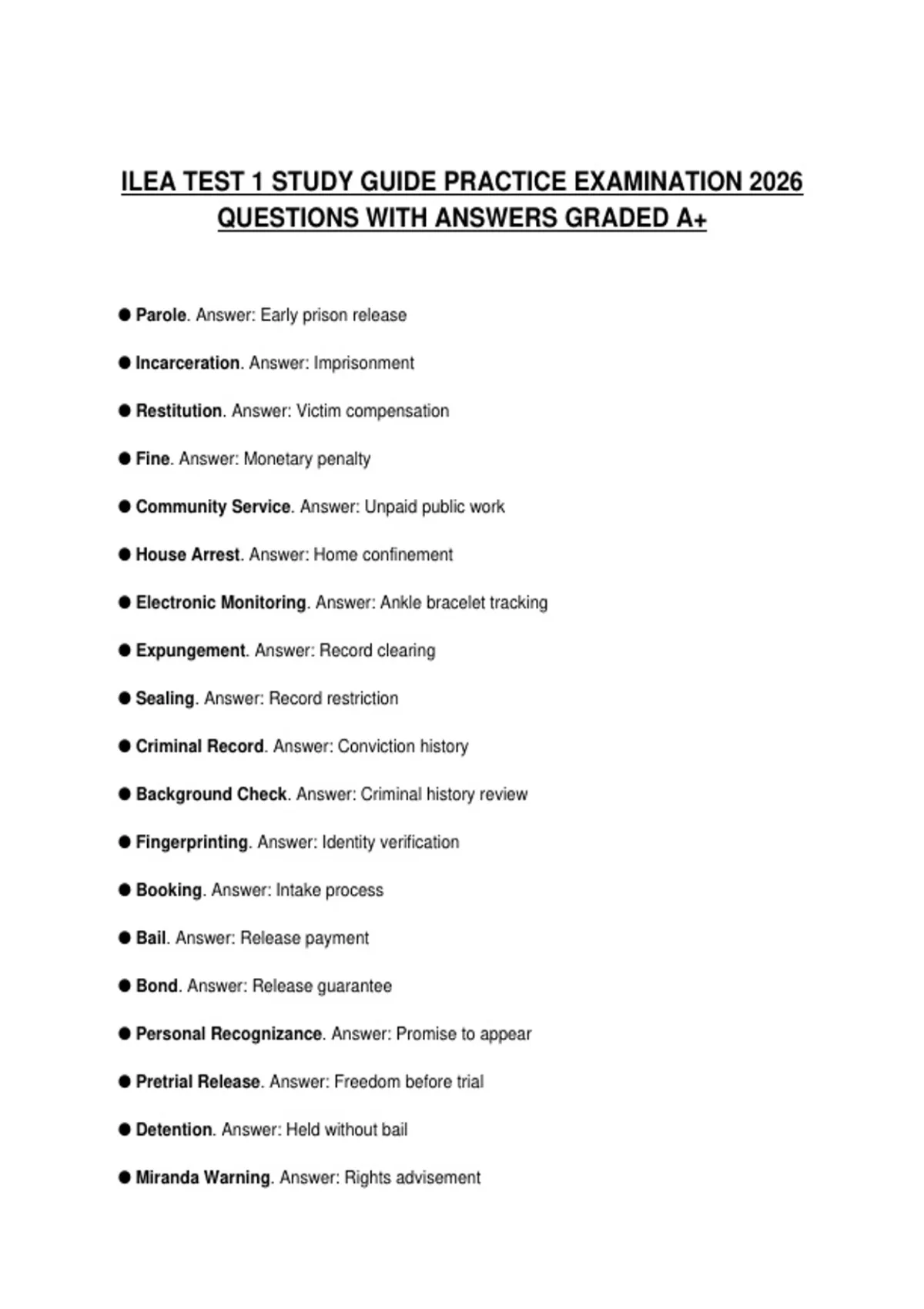 ● Pretrial Release. Answer: Freedom before trial
