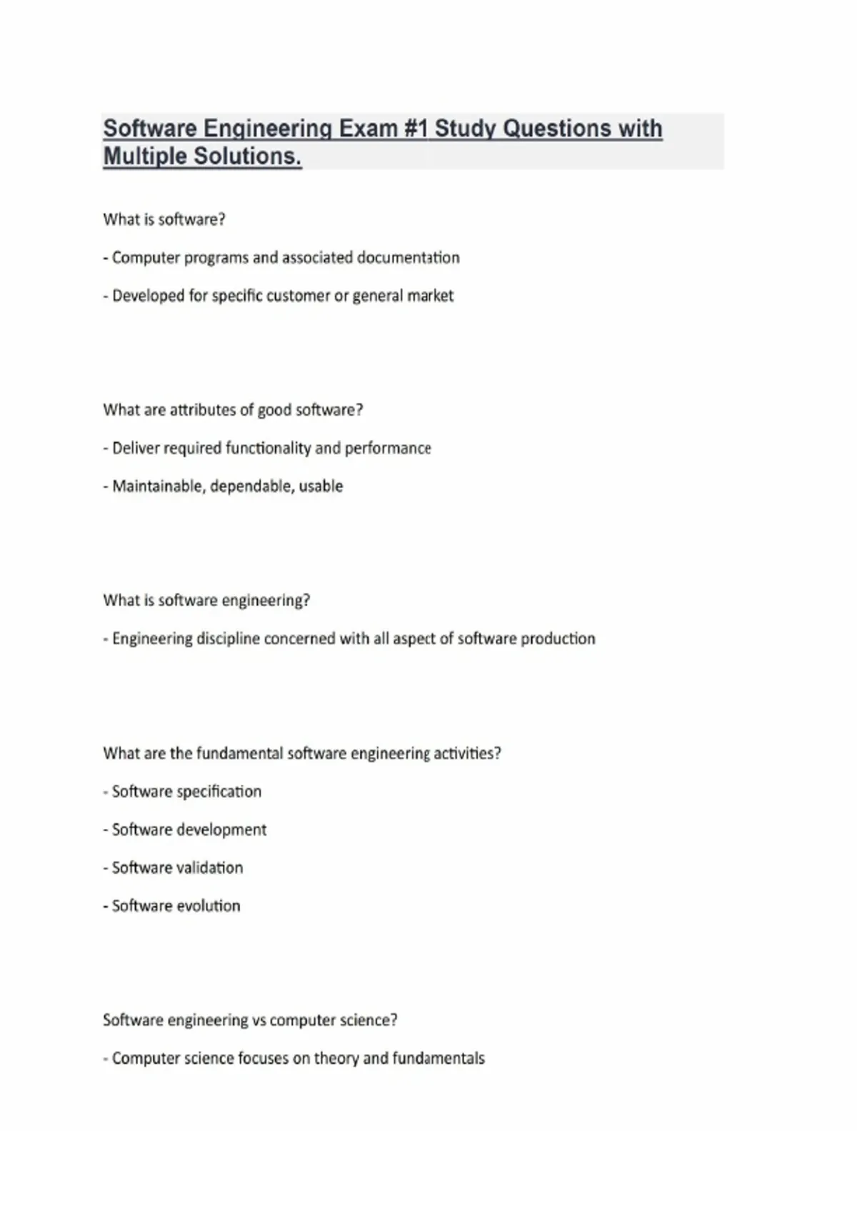 Software Engineering Exam #1 Study Questions with Multiple Solutions.