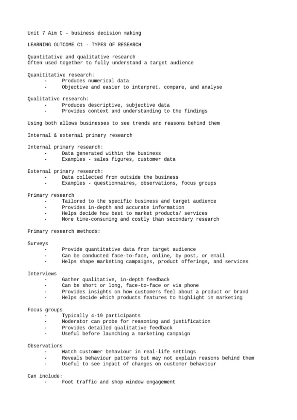 LEARNING OUTCOME C1 - TYPES OF RESEARCH