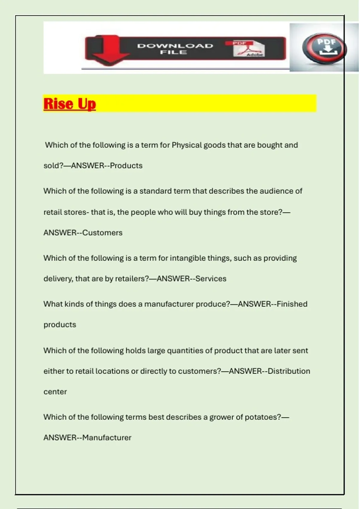 either to retail locations or directly to customers?—ANSWER--Distribution