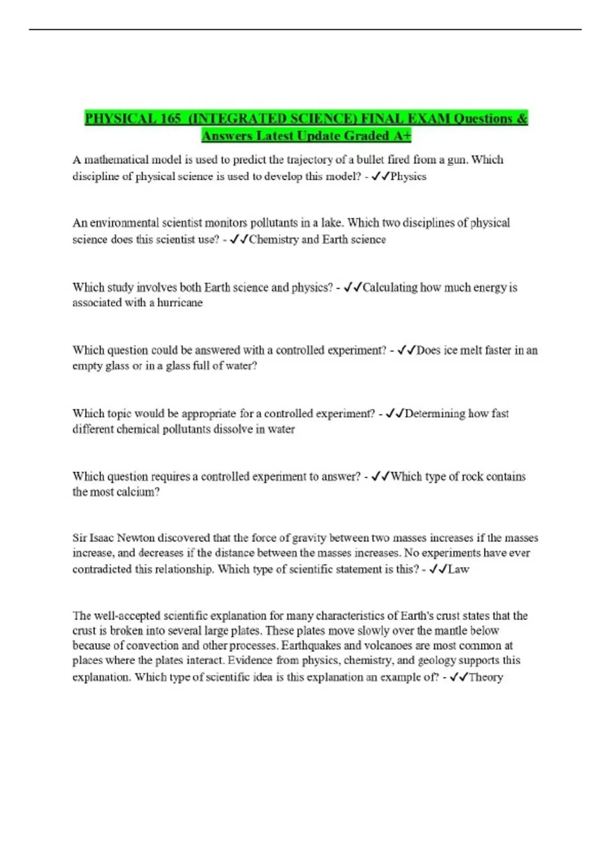 phys 165 final exam question and answers