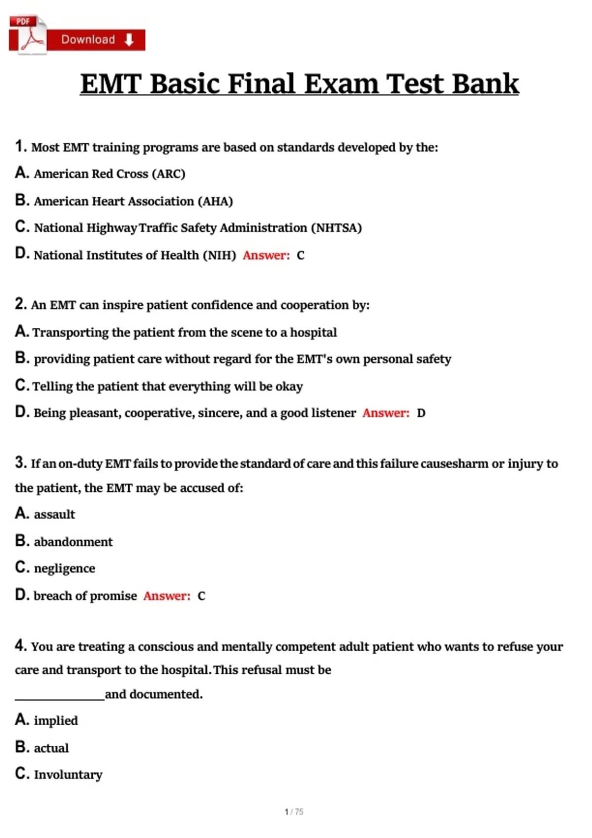 1. Most EMT training programs are based on standards developed by the: