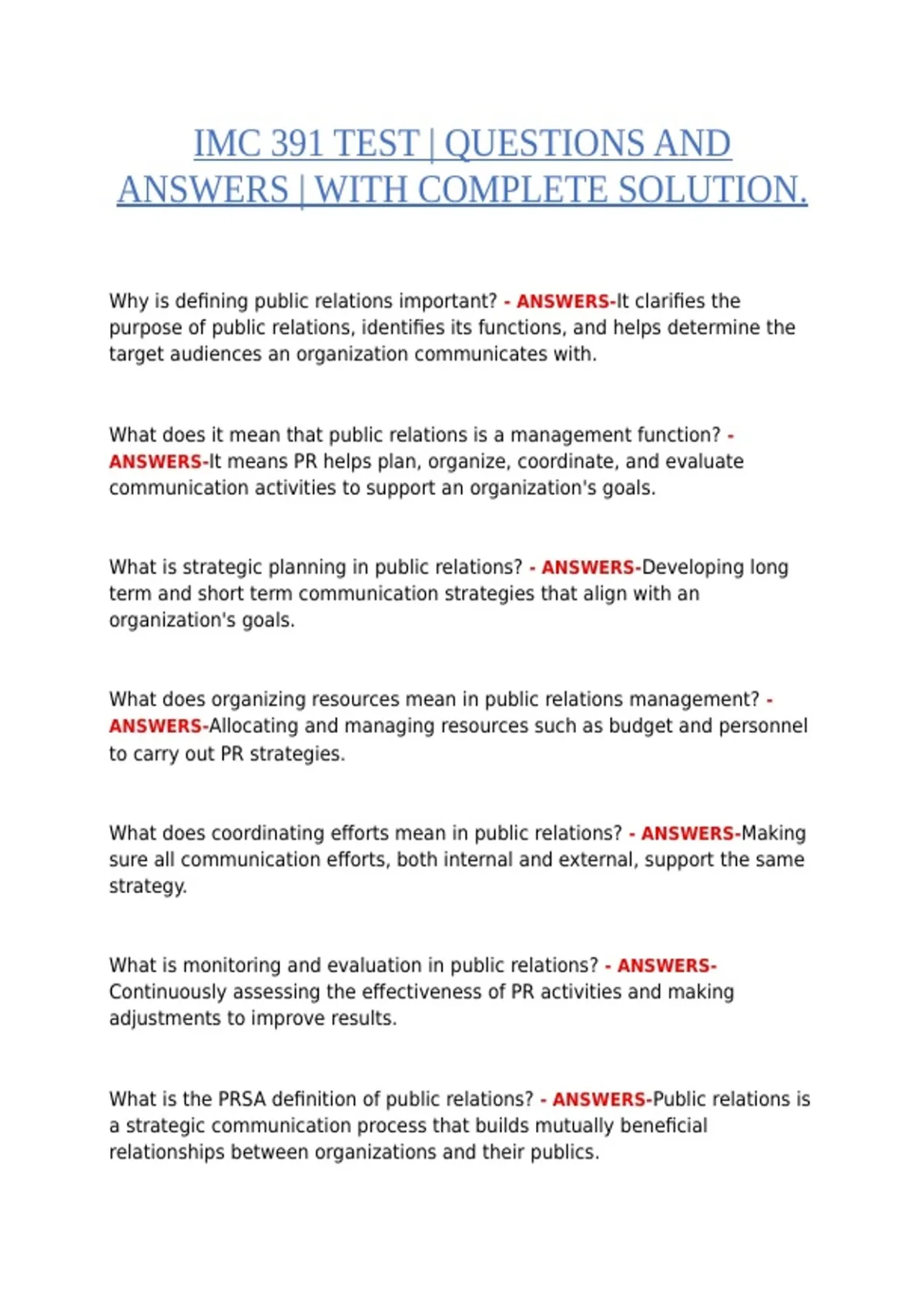 Comprehensive IMC 391 Test study guide featuring fully solved questions and answers. This resource provides step-by-step solutions and clear explanations for all topics covered in Integrated Marketing Communications, making it ideal for students preparing for exams or assessments. Achieve full exam readiness and confidence with this complete, up-to-date guide.