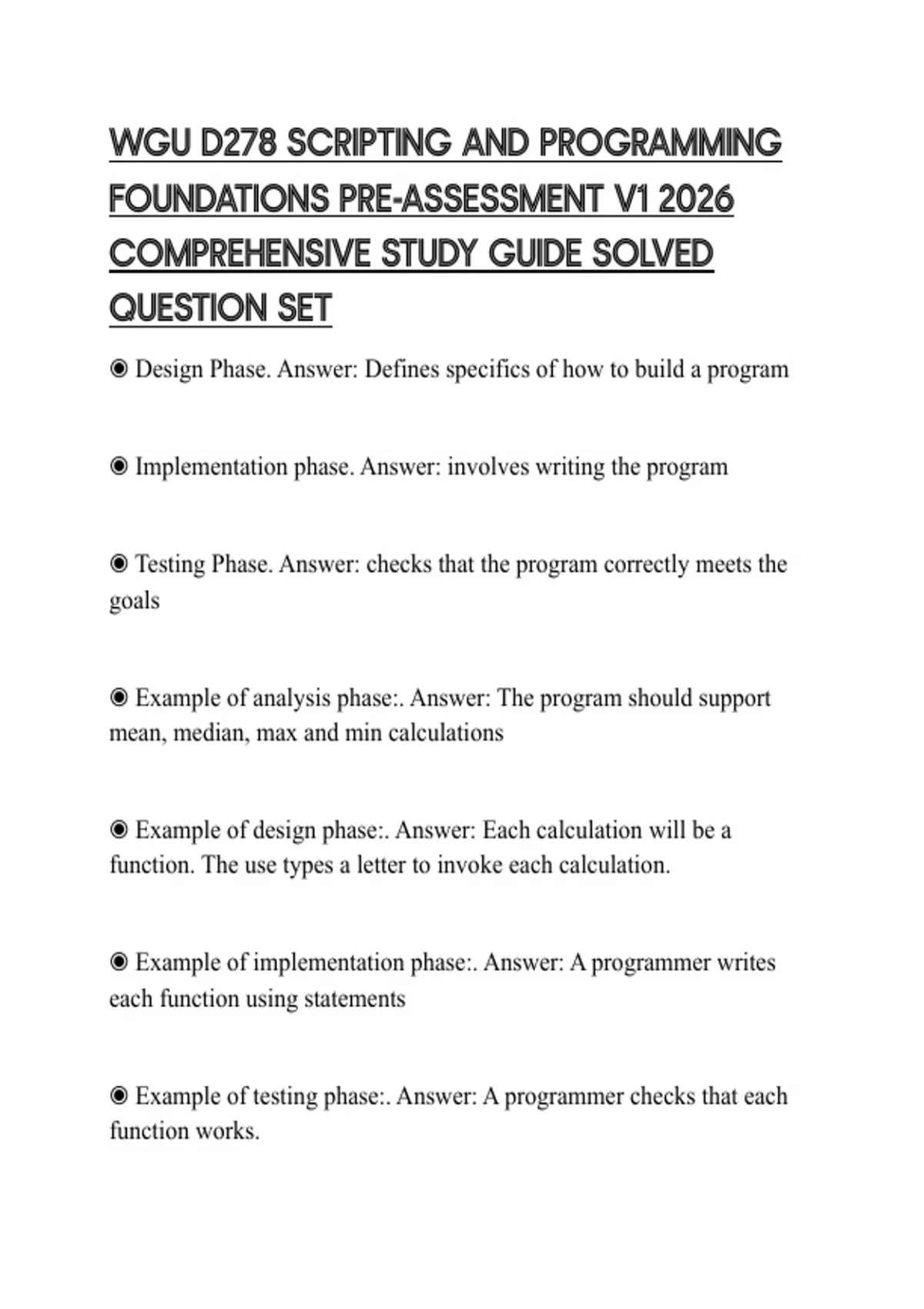 WGU D278 SCRIPTING AND PROGRAMMING FOUNDATIONS PRE-ASSESSMENT V1 2026 COMPREHENSIVE STUDY GUIDE SOLVED QUESTION SET