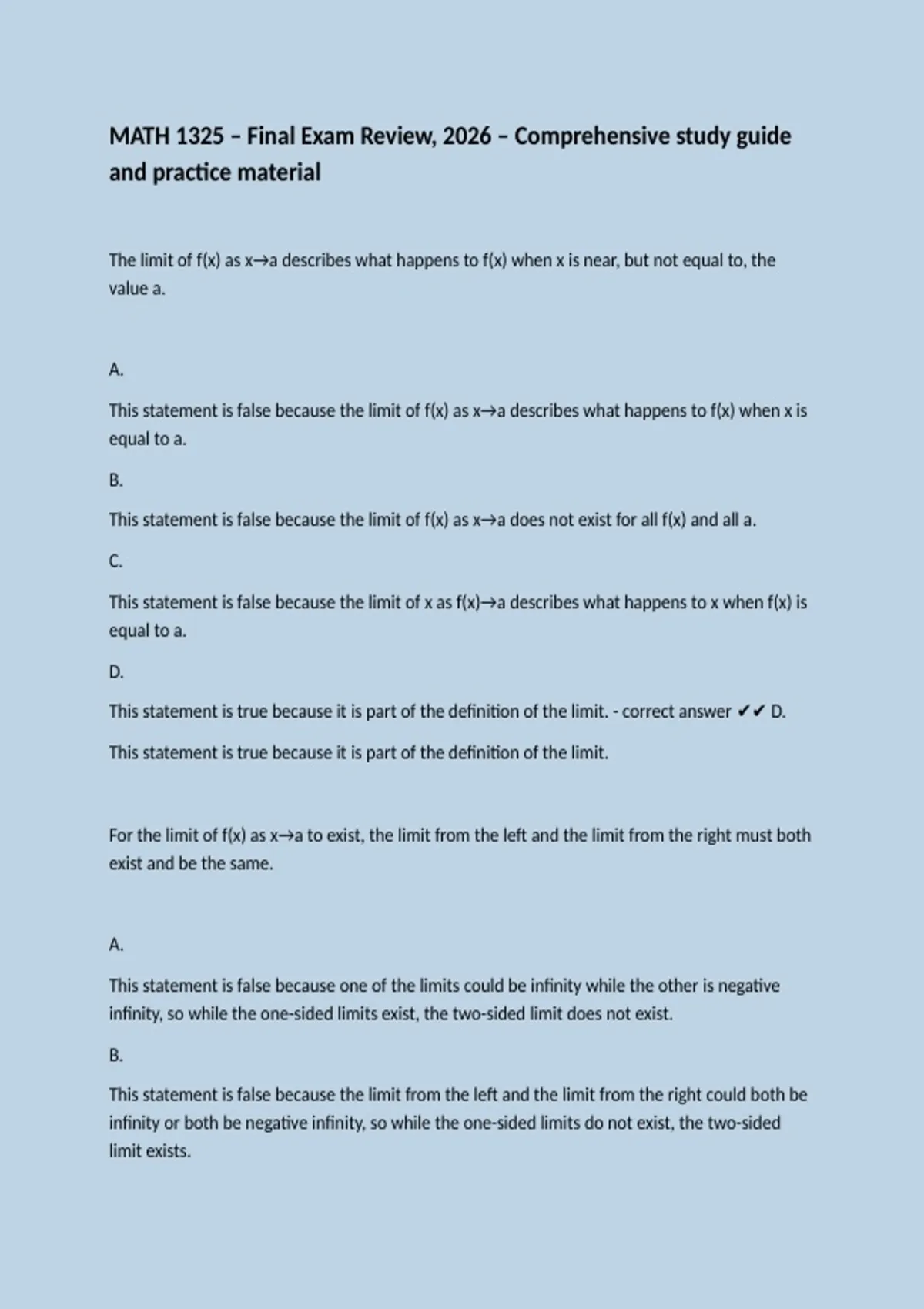 This statement is true because it is part of the definition of the limit. - correct answer ✔✔ D.