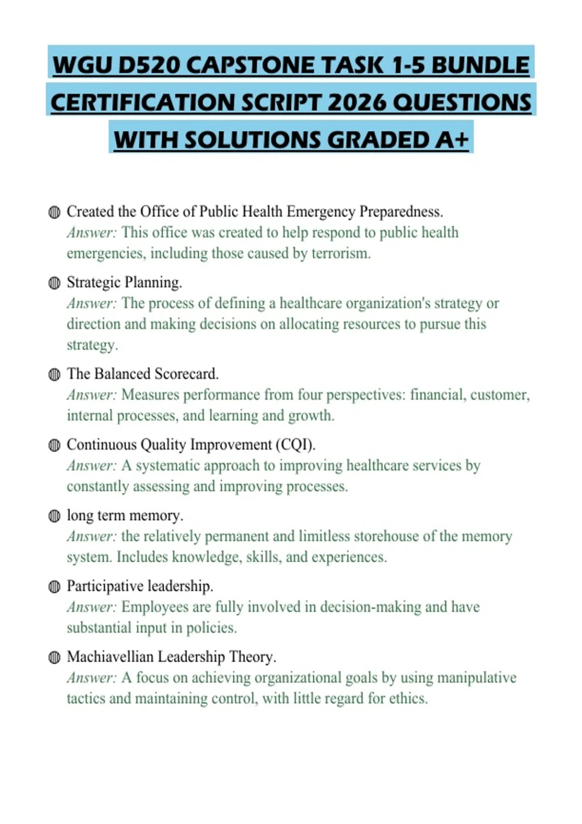WGU D520 CAPSTONE TASK 1-5 BUNDLE CERTIFICATION SCRIPT 2026 QUESTIONS WITH SOLUTIONS GRADED A+