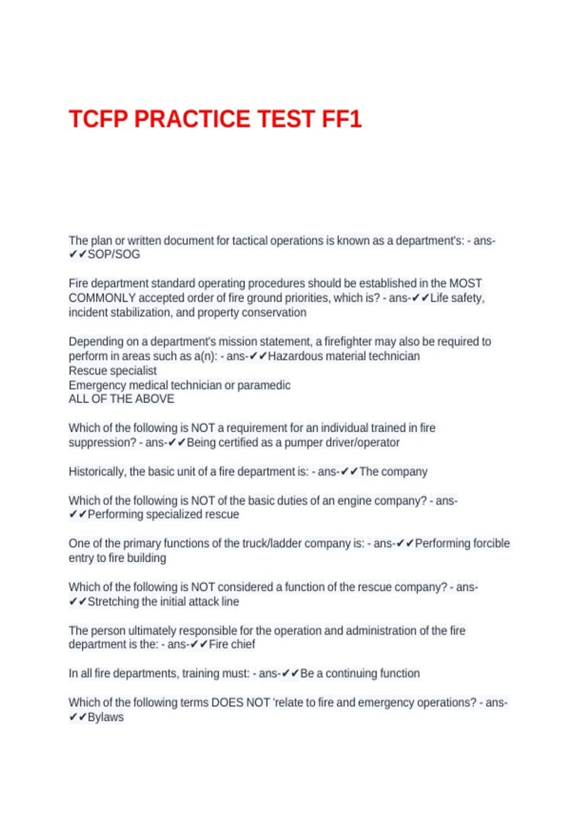 TCFP PRACTICE TEST FF1