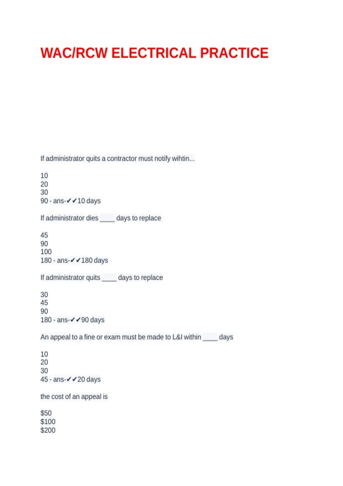 WAC/RCW ELECTRICAL PRACTICE