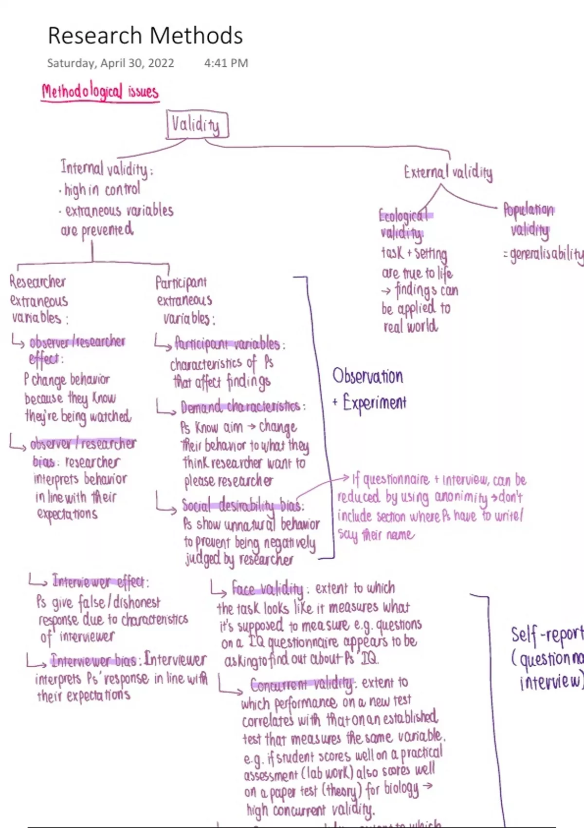 Psychology A-Level OCR: Summary of Research Methods