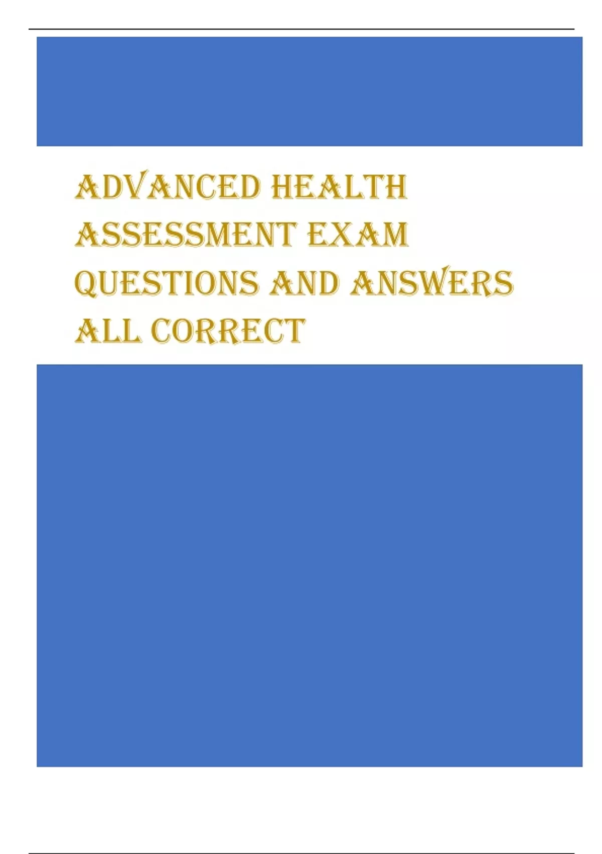 ADVANCED HEALTH ASSESSMENT EXAM QUESTIONS AND ANSWERS ALL CORRECT