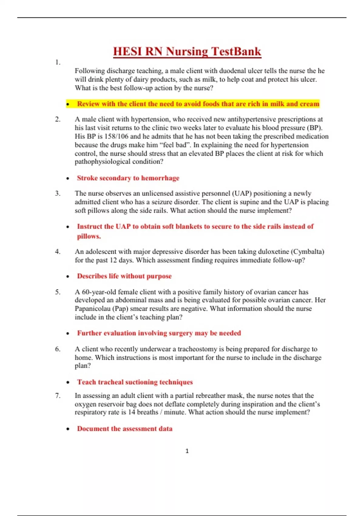 HESI RN Nursing TestBank