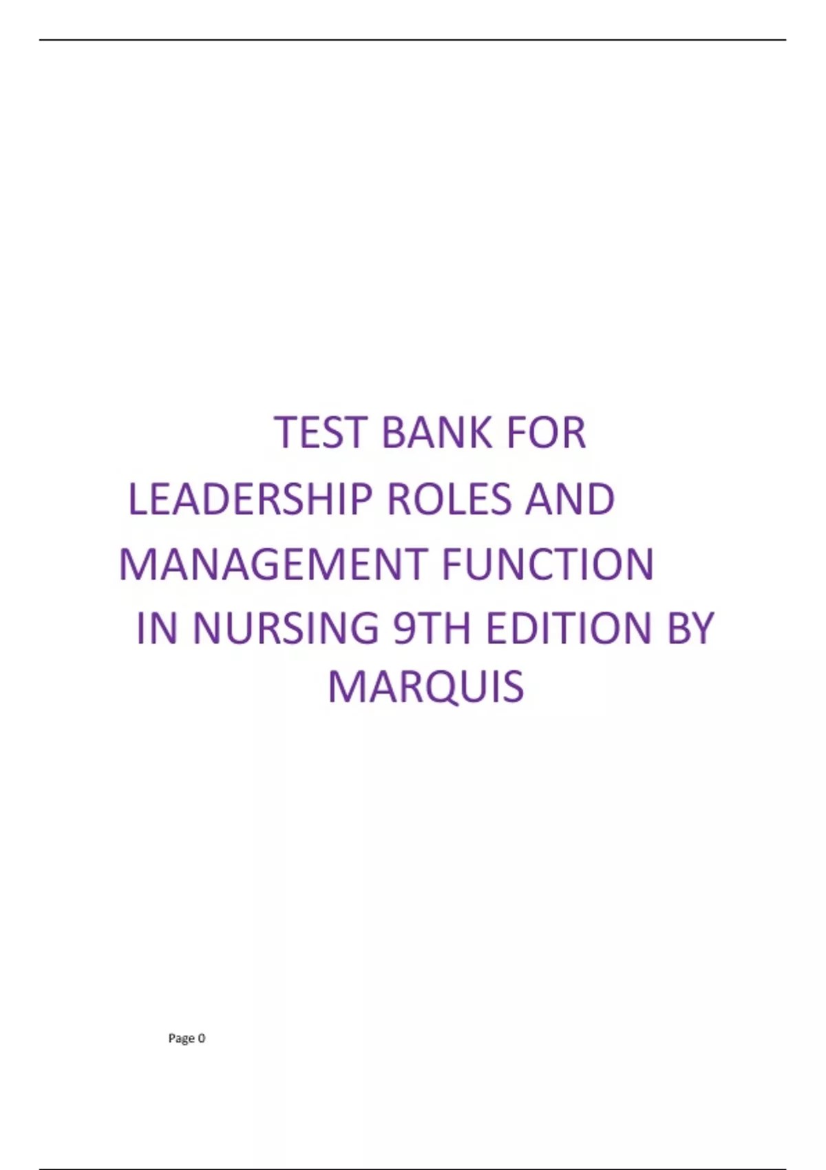 TEST BANK FOR LEADERSHIP ROLES AND MANAGEMENT FUNCTION IN NURSING 9TH EDITION BY MARQUIS TEST BANK FOR LEADERSHIP ROLES AND MANAGEMENT FUNCTION IN NURSING 9TH EDITION BY MARQUIS TEST BANK FOR LEADERSHIP ROLES AND MANAGEMENT FUNCTION IN NURSING 9TH EDITION BY MARQUIS