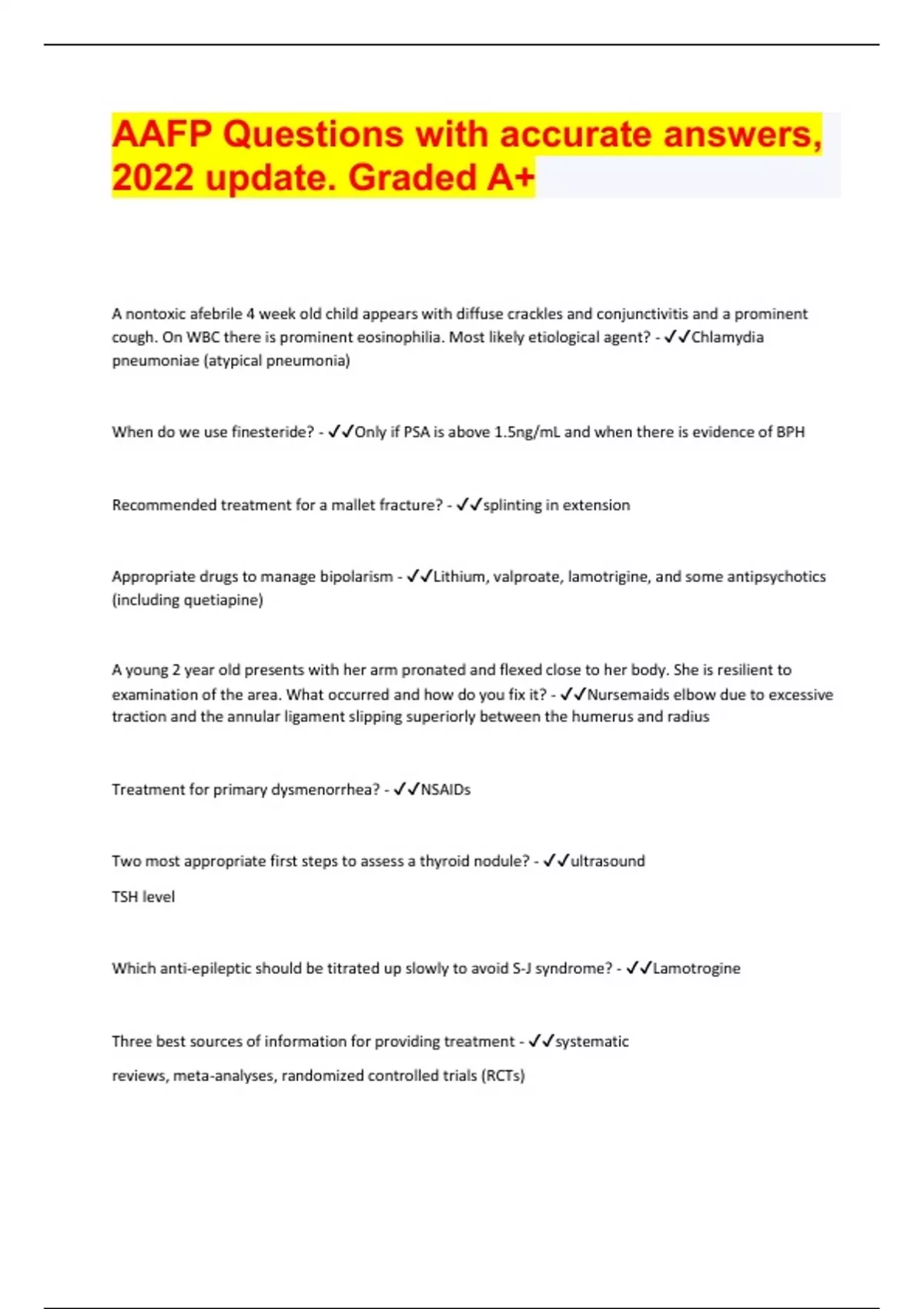 AAFP Questions with accurate answers, 2022 update. Graded A+ Document Content and Description Below