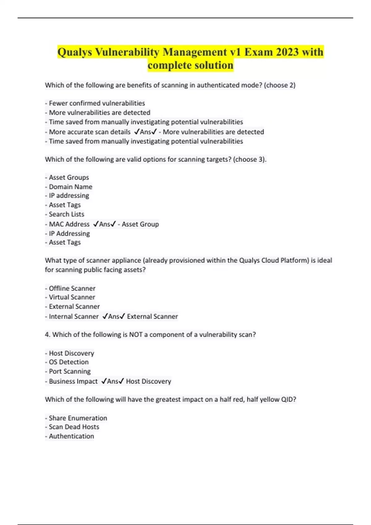 qualys vulnerability management v1 exam 2023 with complete solution