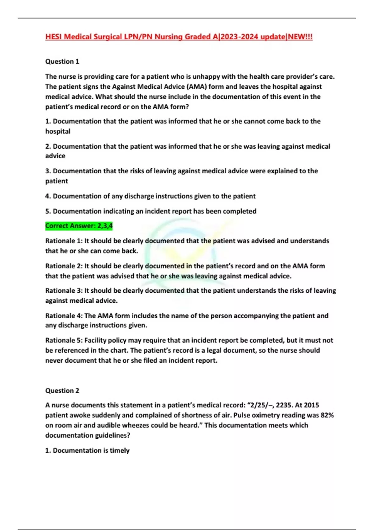 hesi medical surgical lpnpn nursing graded a|2023 2024 update