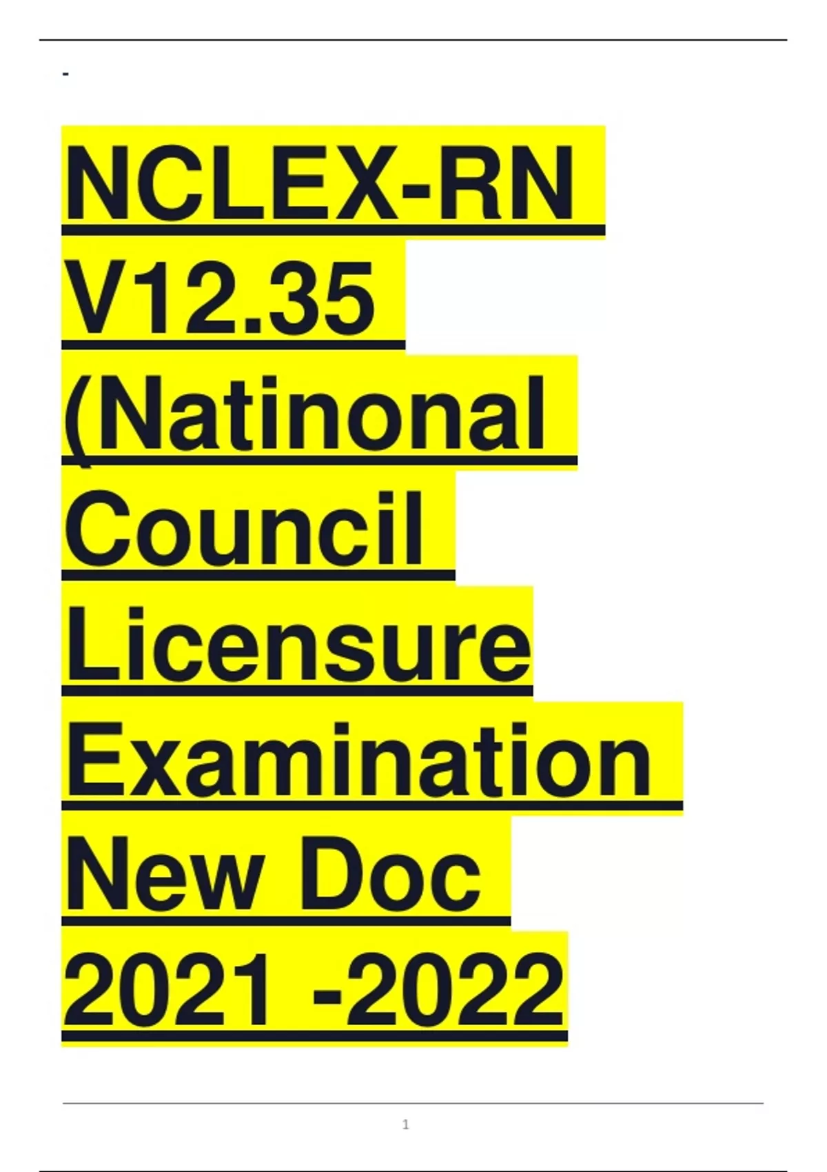 NCLEX-RN V12.35 National Council Licensure Examination(NCLEX-RN) new doc 2022/2023 Exam