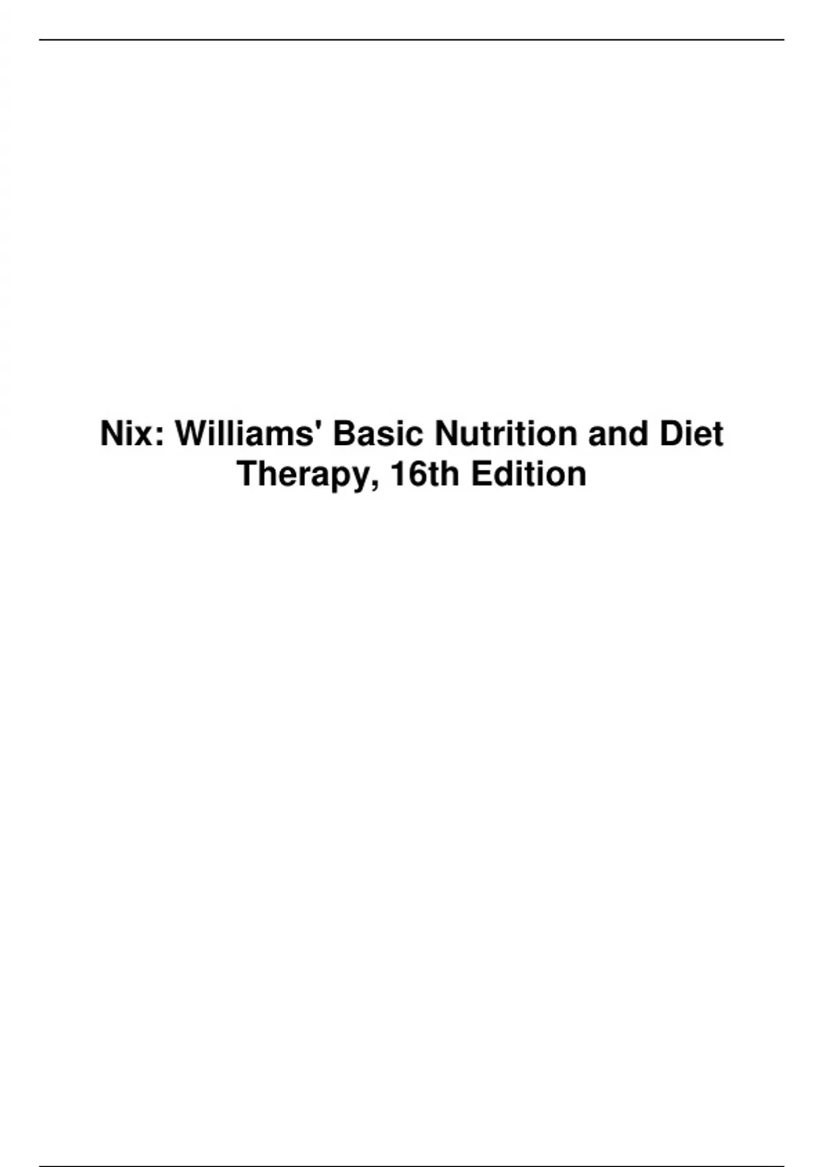 Test Bank for Williams' Basic Nutrition and Diet Therapy, 16th Edition by Nix