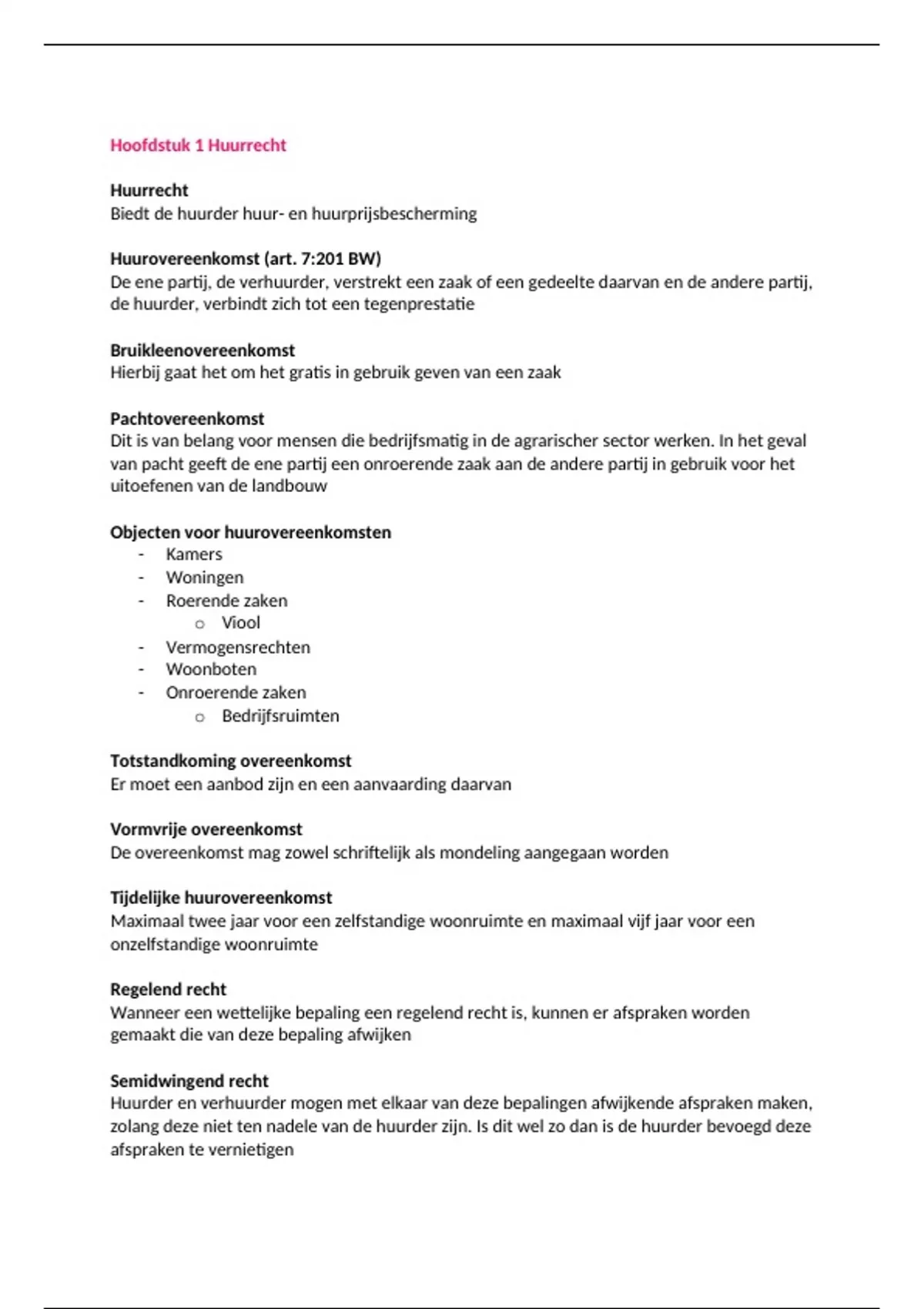 De ene partij, de verhuurder, verstrekt een zaak of een gedeelte daarvan en de andere partij,