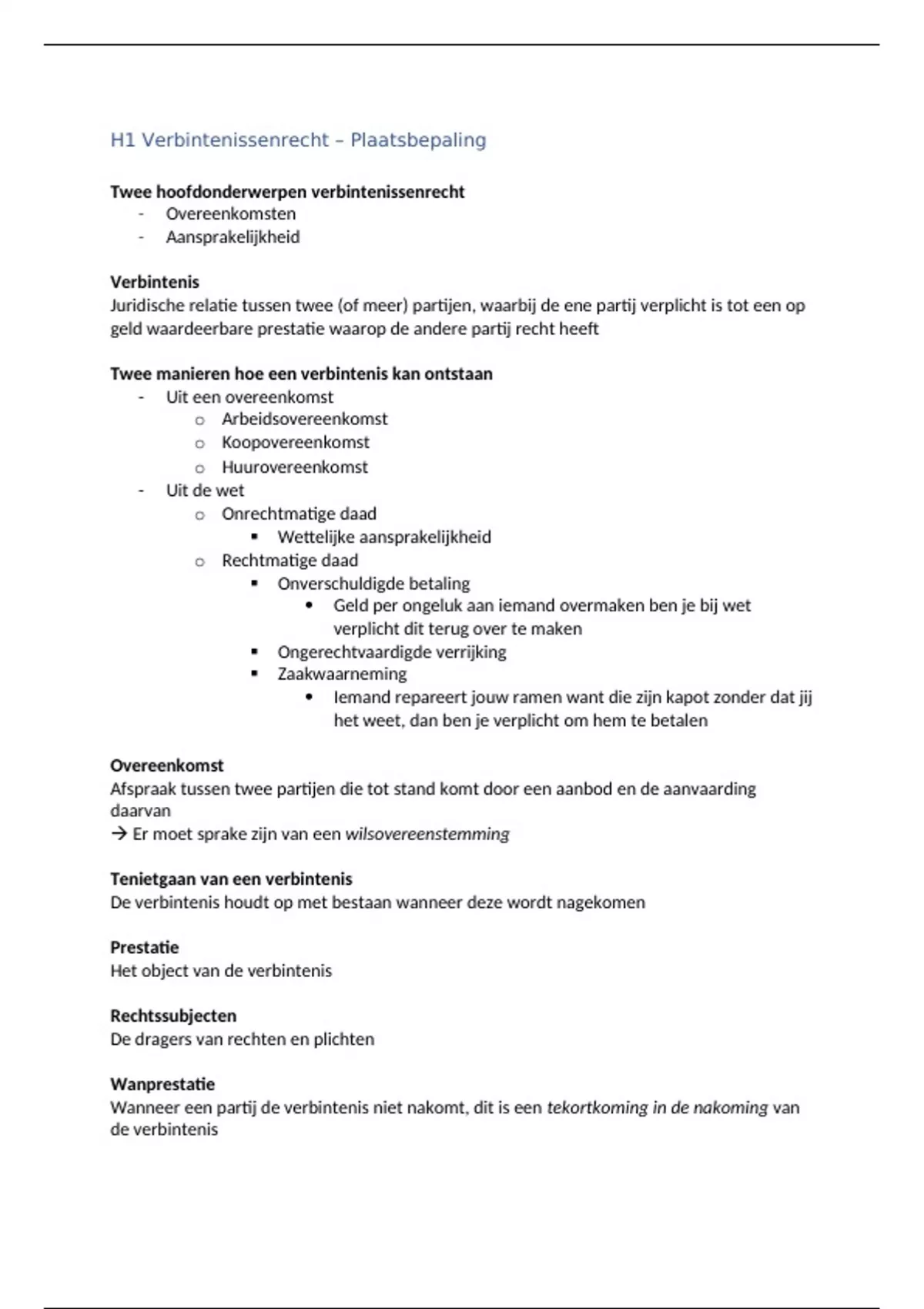 Dit is een samenvatting voor het vak Verbintenissenrecht. Dit wordt gegeven op de opleiding sociaal juridische dienstverlening of de minor Recht voor niet-juristen.