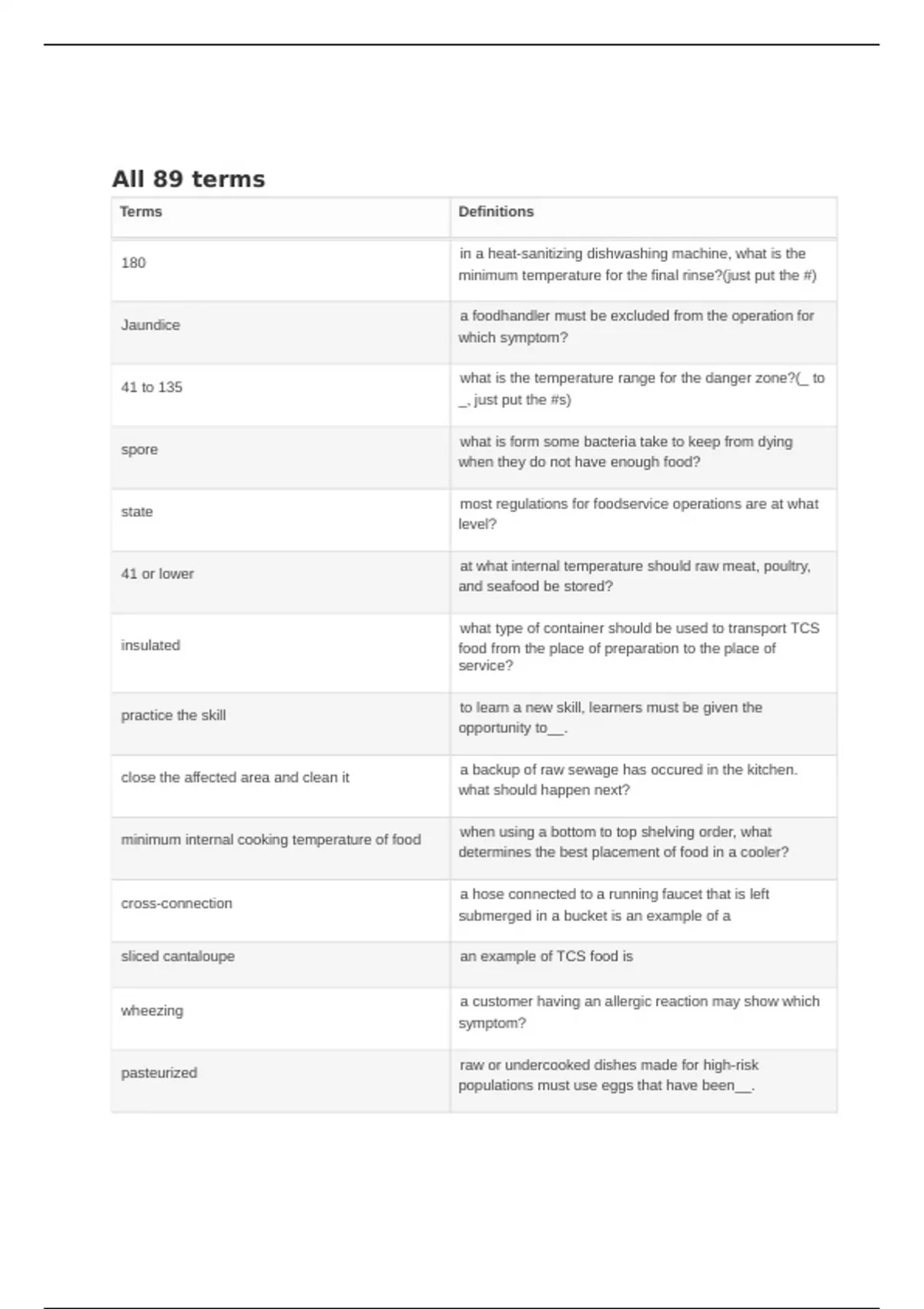 HOSPITALTY 2613 ServSafe All Study Questions-Quizlet.