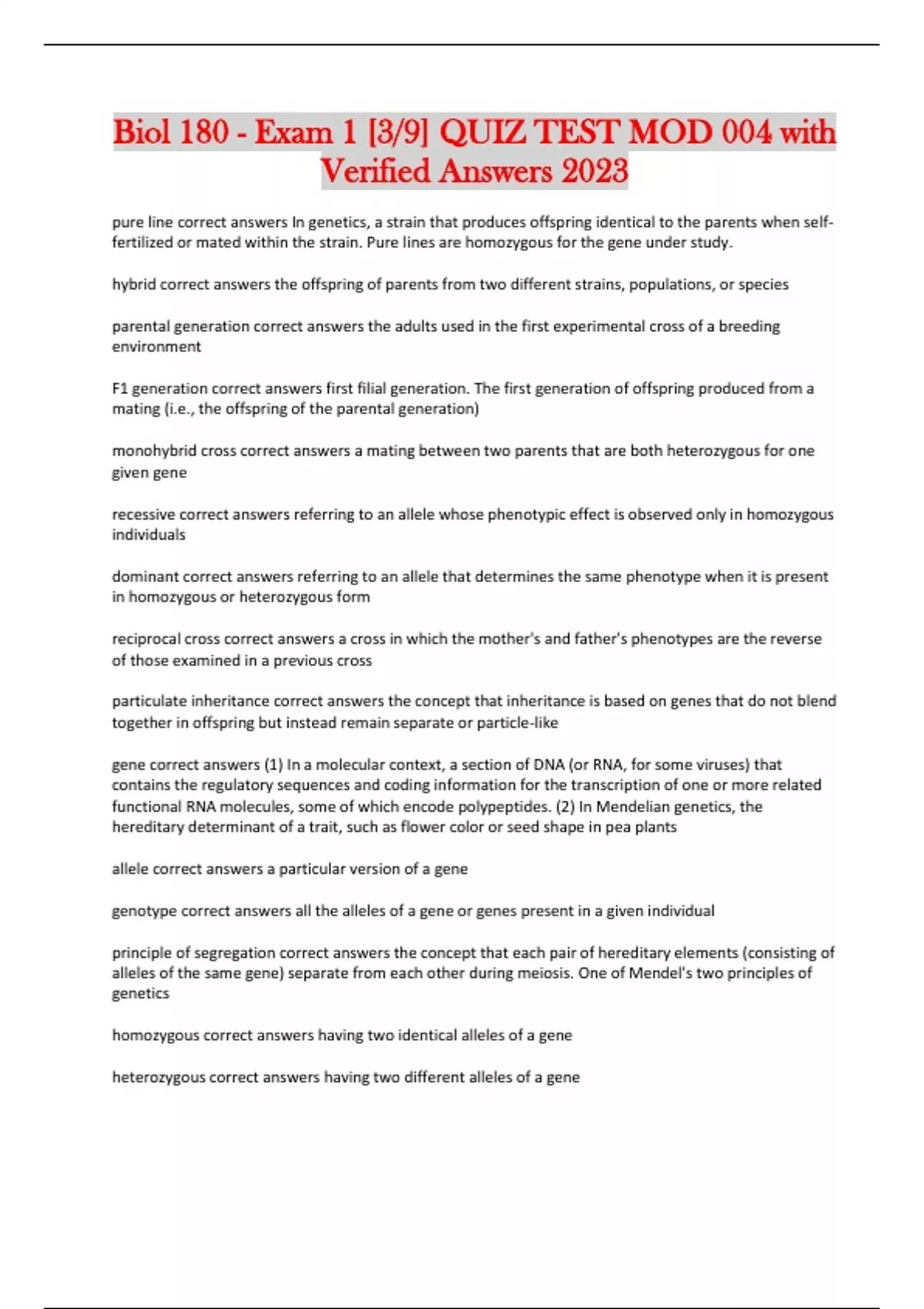 biol 180 exam 1 39 quiz test mod 004 with verified answers 2023