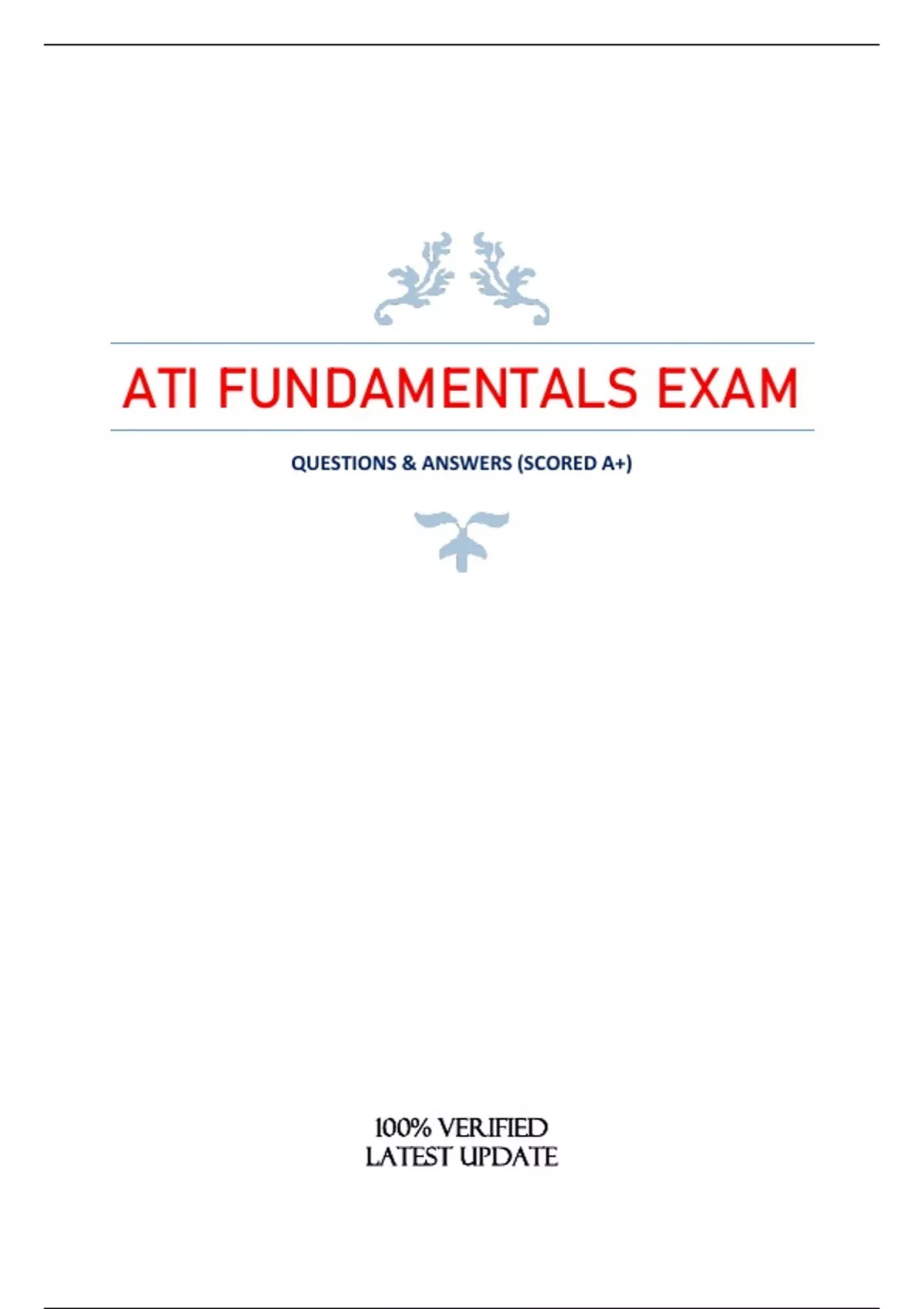 ATI FUNDAMENTALS EXAM QUESTIONS & ANSWERS (SCORED A+)