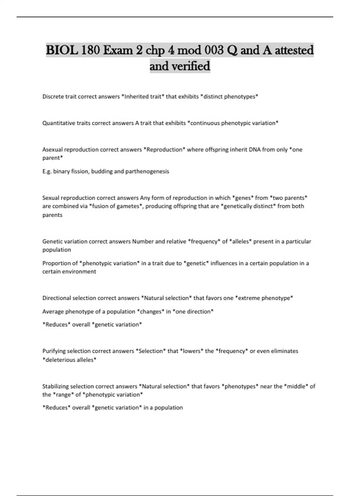 Quantitative traits correct answers A trait that exhibits *continuous phenotypic variation*
