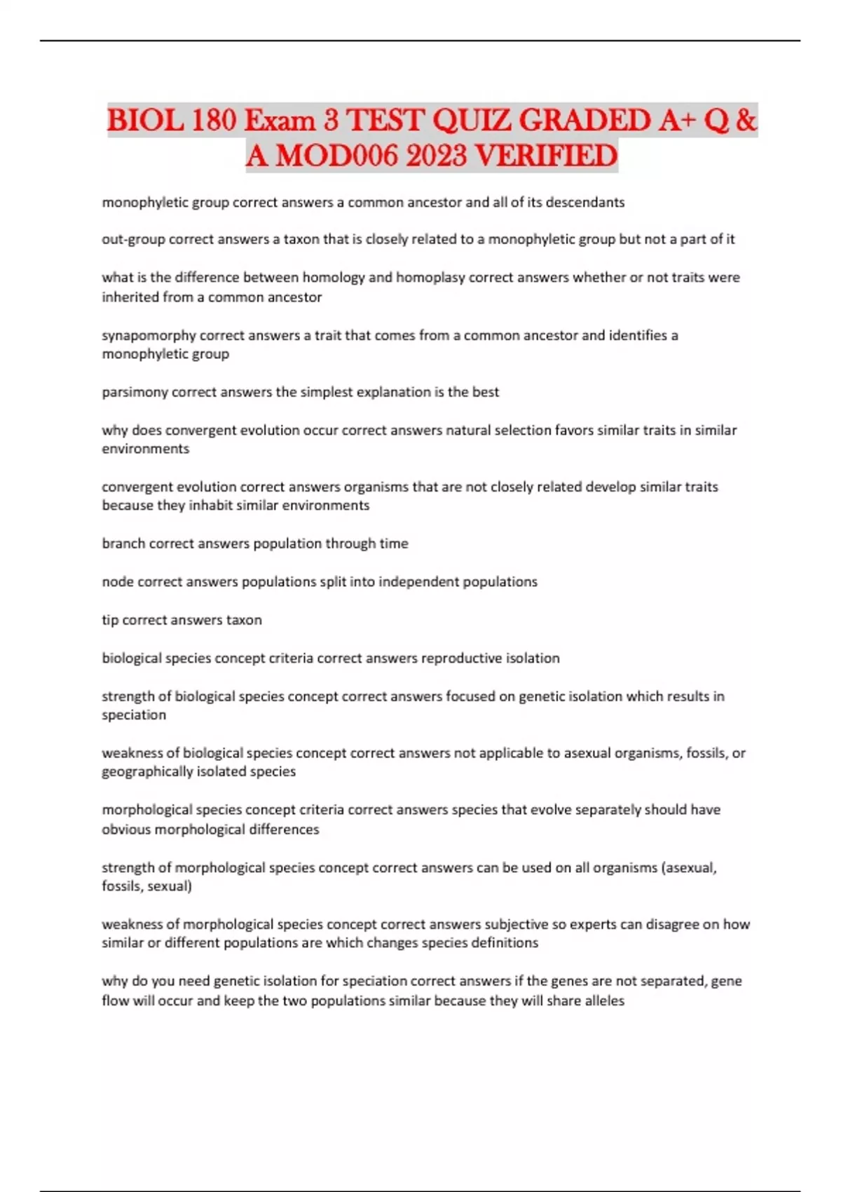 strength of biological species concept correct answers focused on genetic isolation which results in