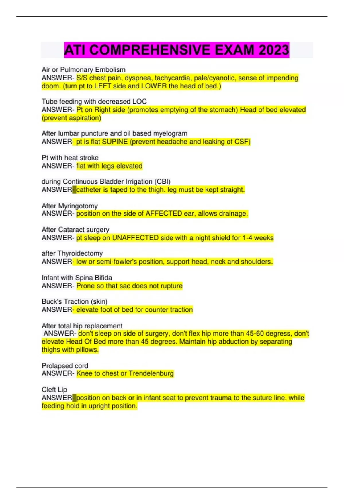 ATI COMPREHENSIVE EXAM 2023 QUESTIONS AND ANSWERS WITH GUARANTEED A+ SCORE