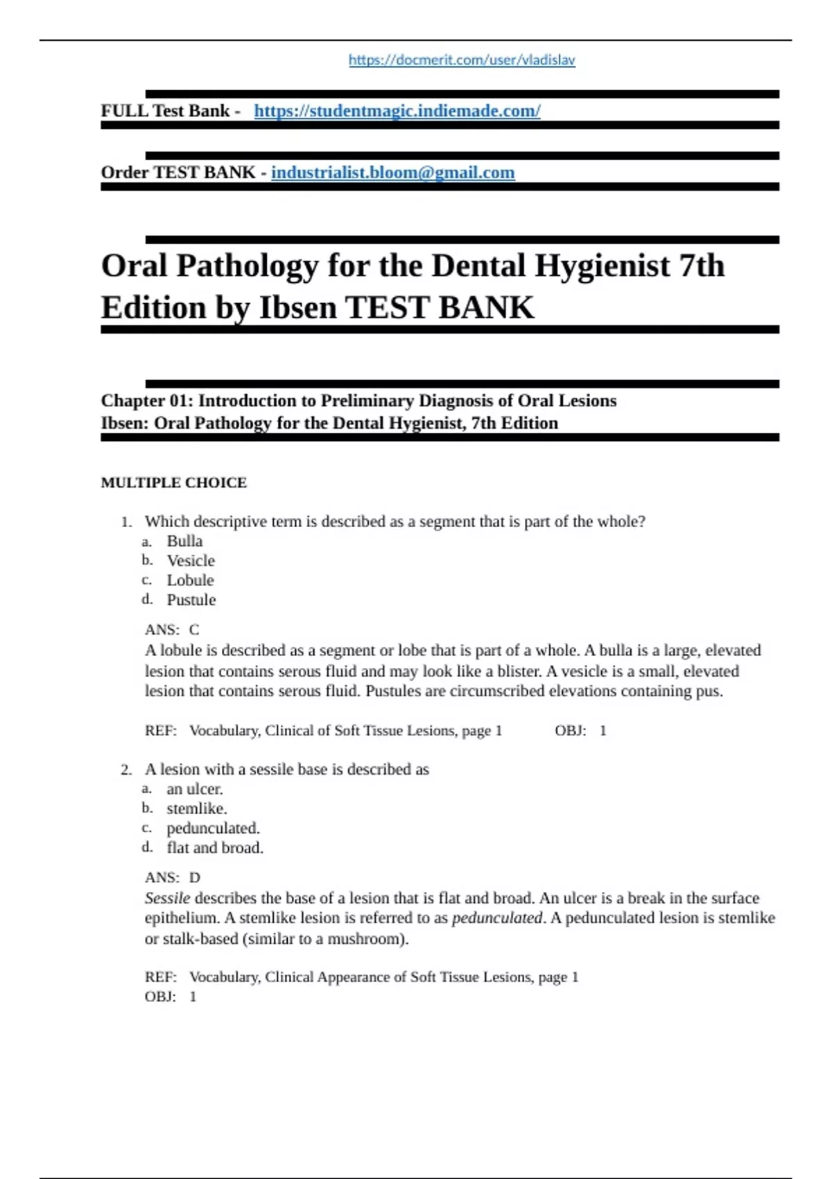 Oral Pathology for the Dental Hygienist 7th Edition by Ibsen TEST BANK