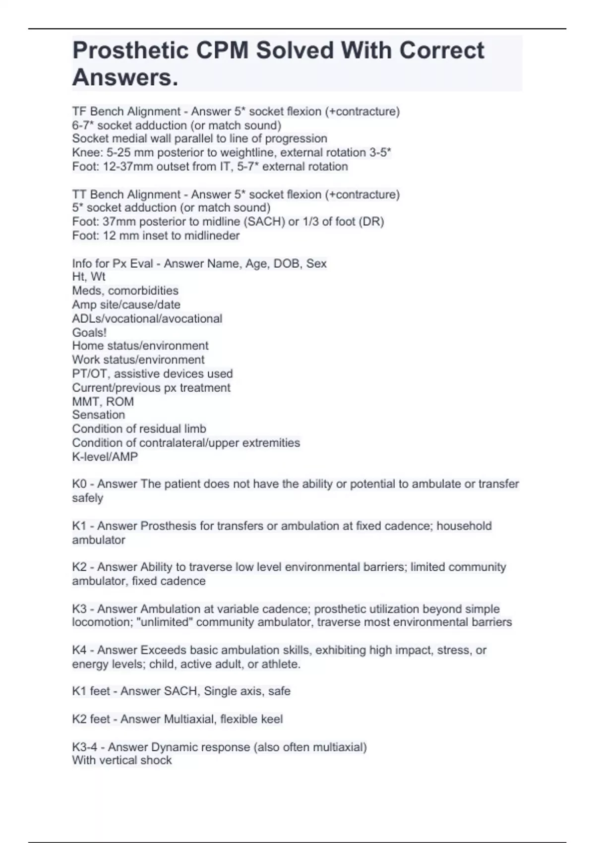 Prosthetic CPM Solved With Correct Answers.