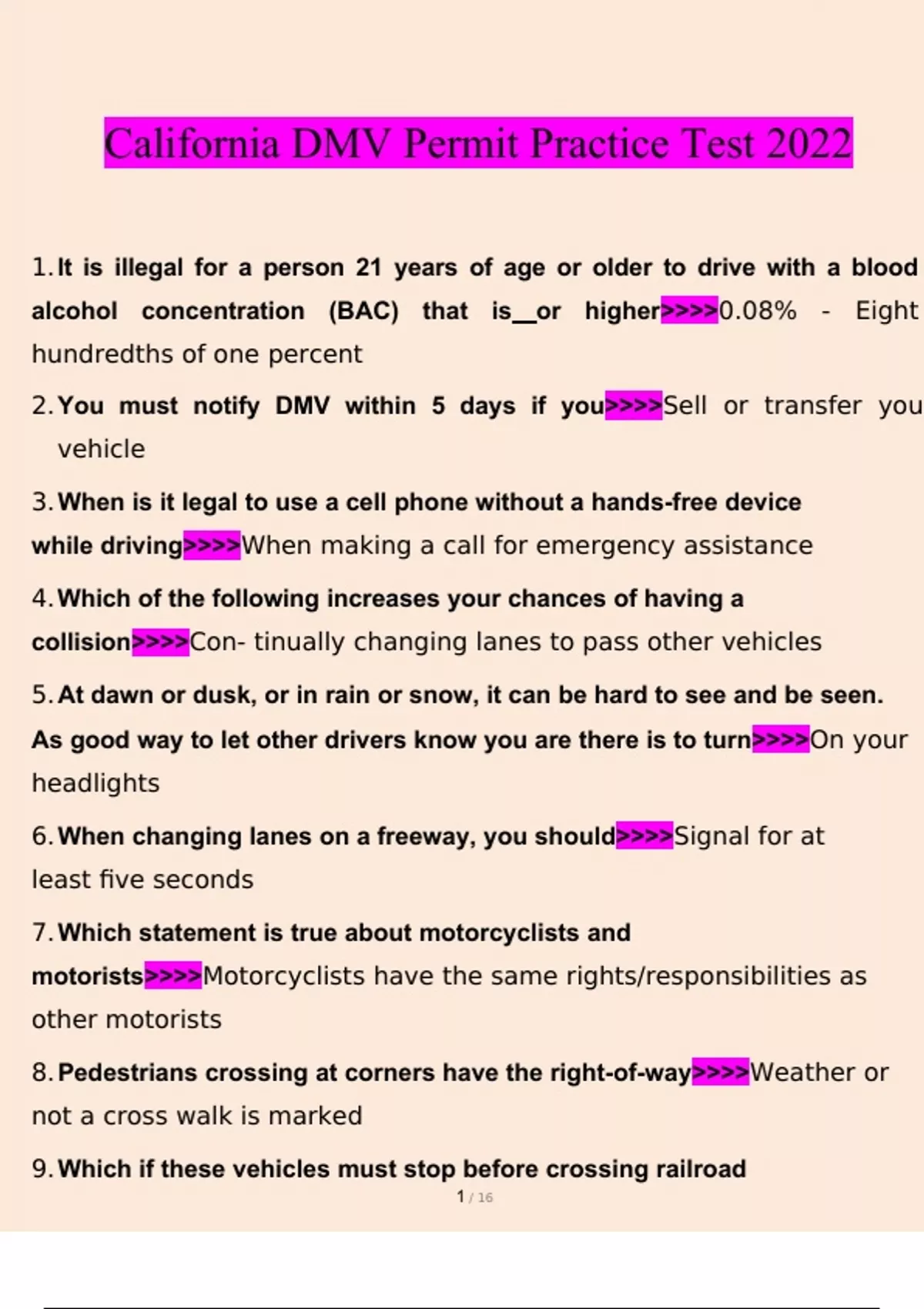 california dmv permit practice test questions amp answers2023 verified answers