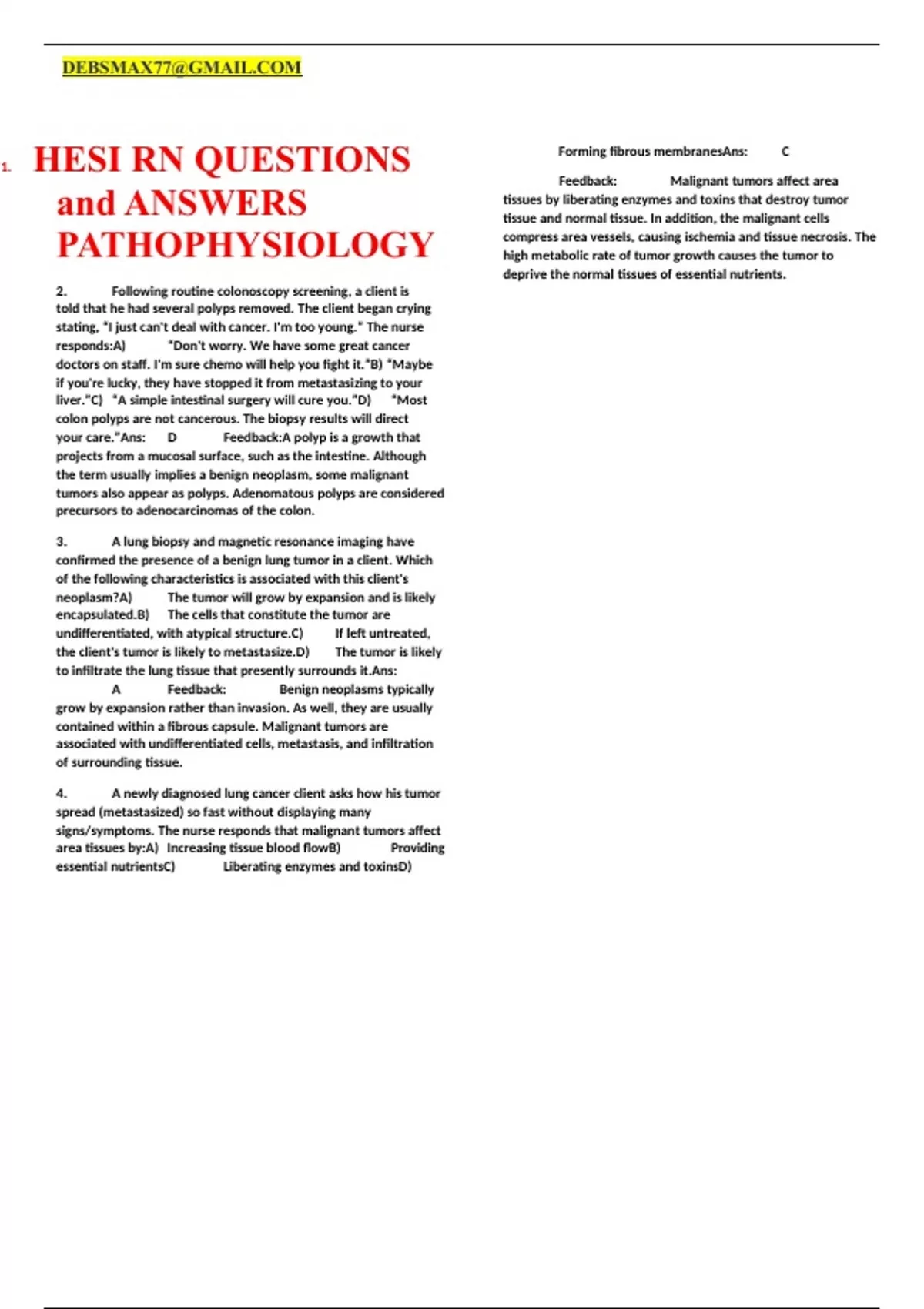 hesi rn questions and answers pathophysiology