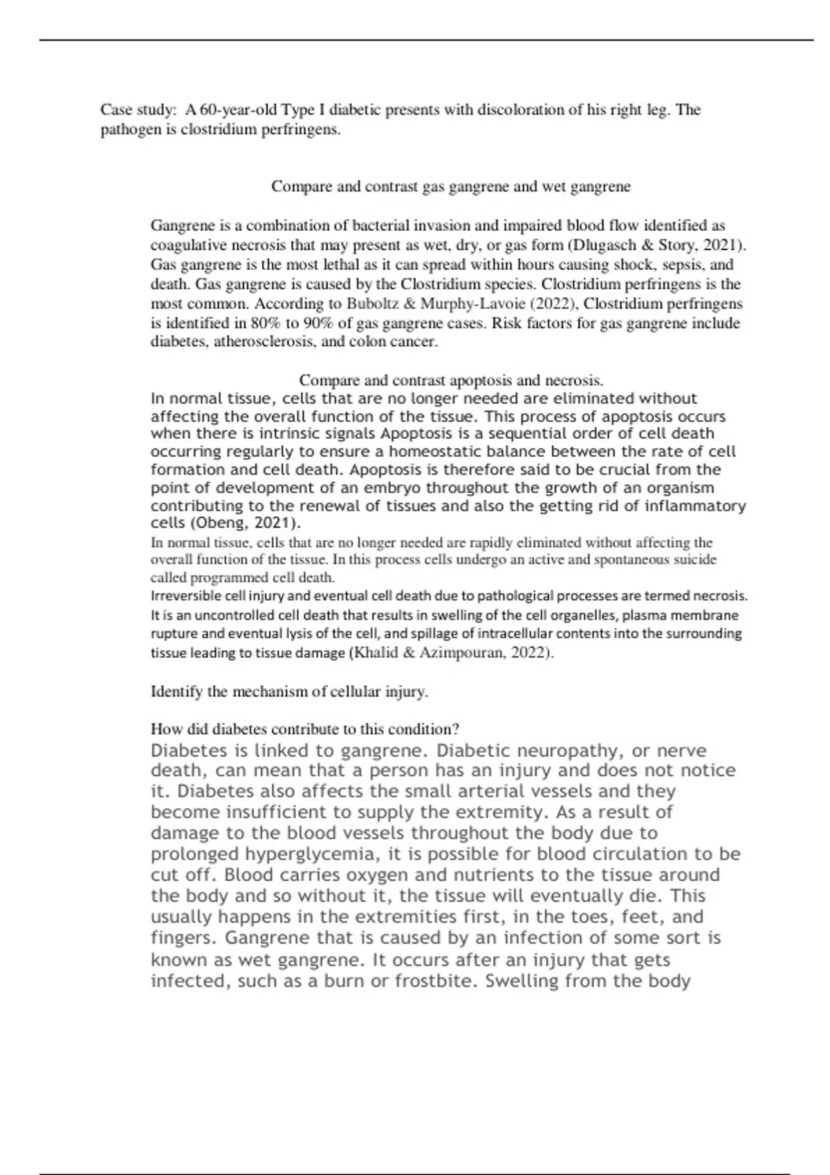 case study a 60 year old type i diabetic presents with discoloration of his right leg the pathogen is clostridium perfringens