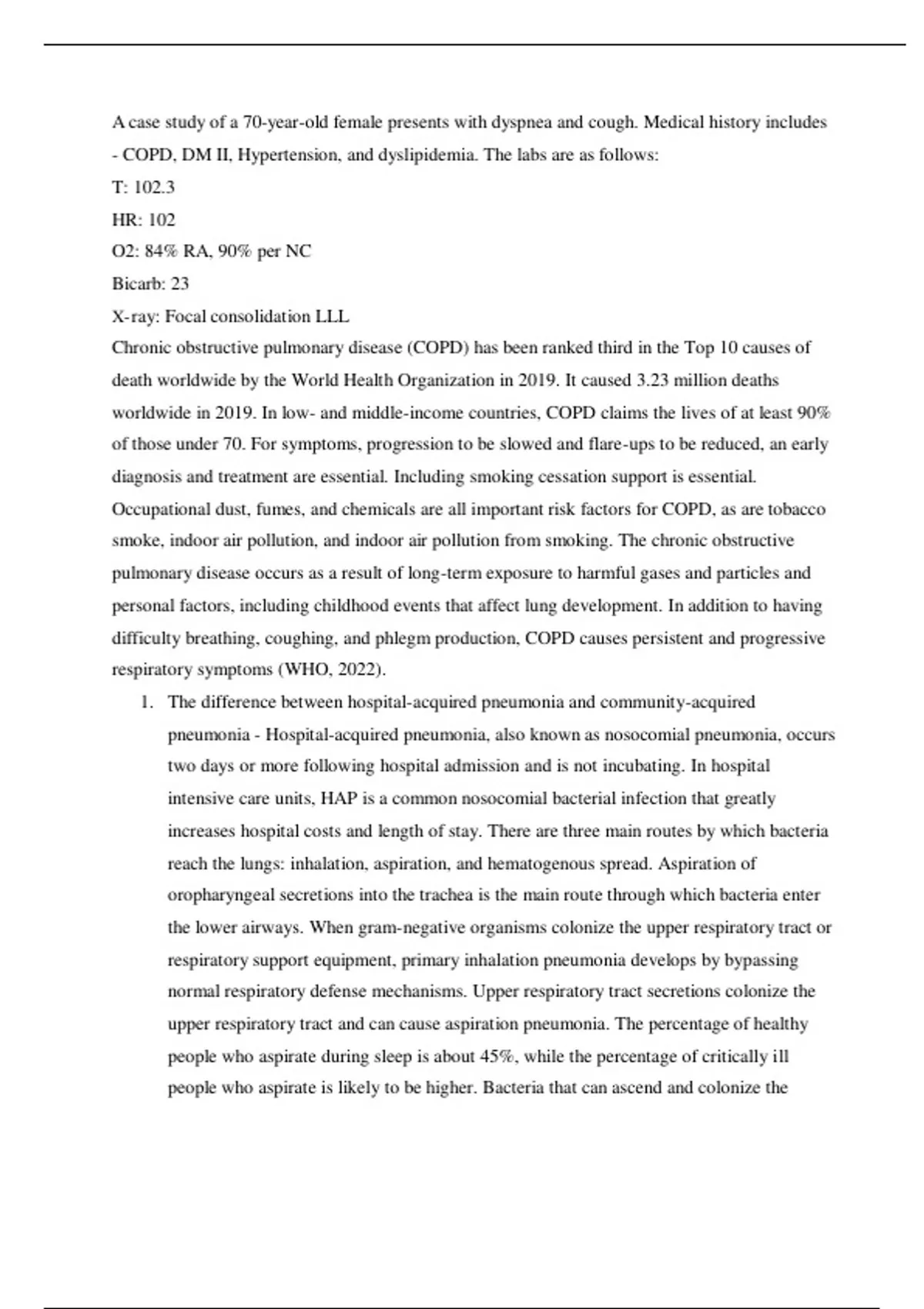 a case study of a 70 year old female presents with dyspnea and cough medical history includes copd