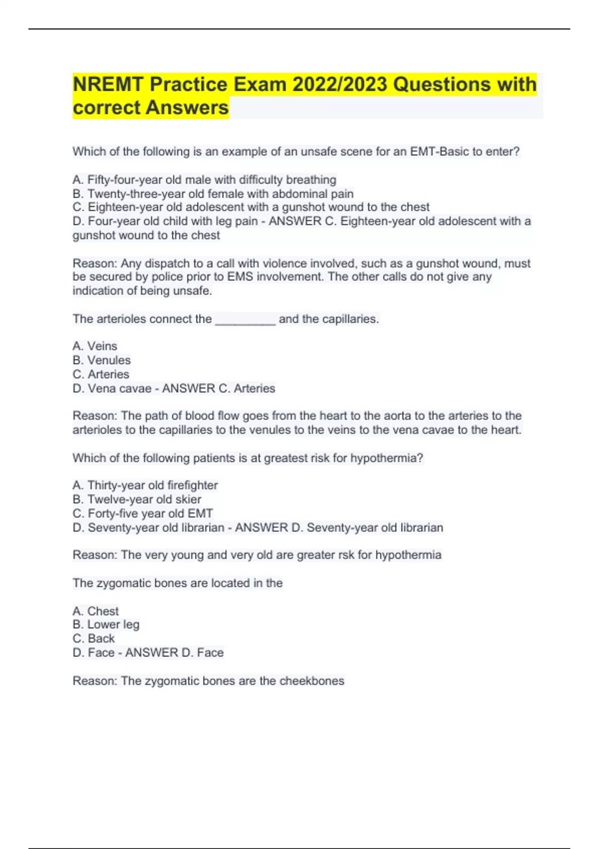 nremt practice exam 20222023 questions with correct answers