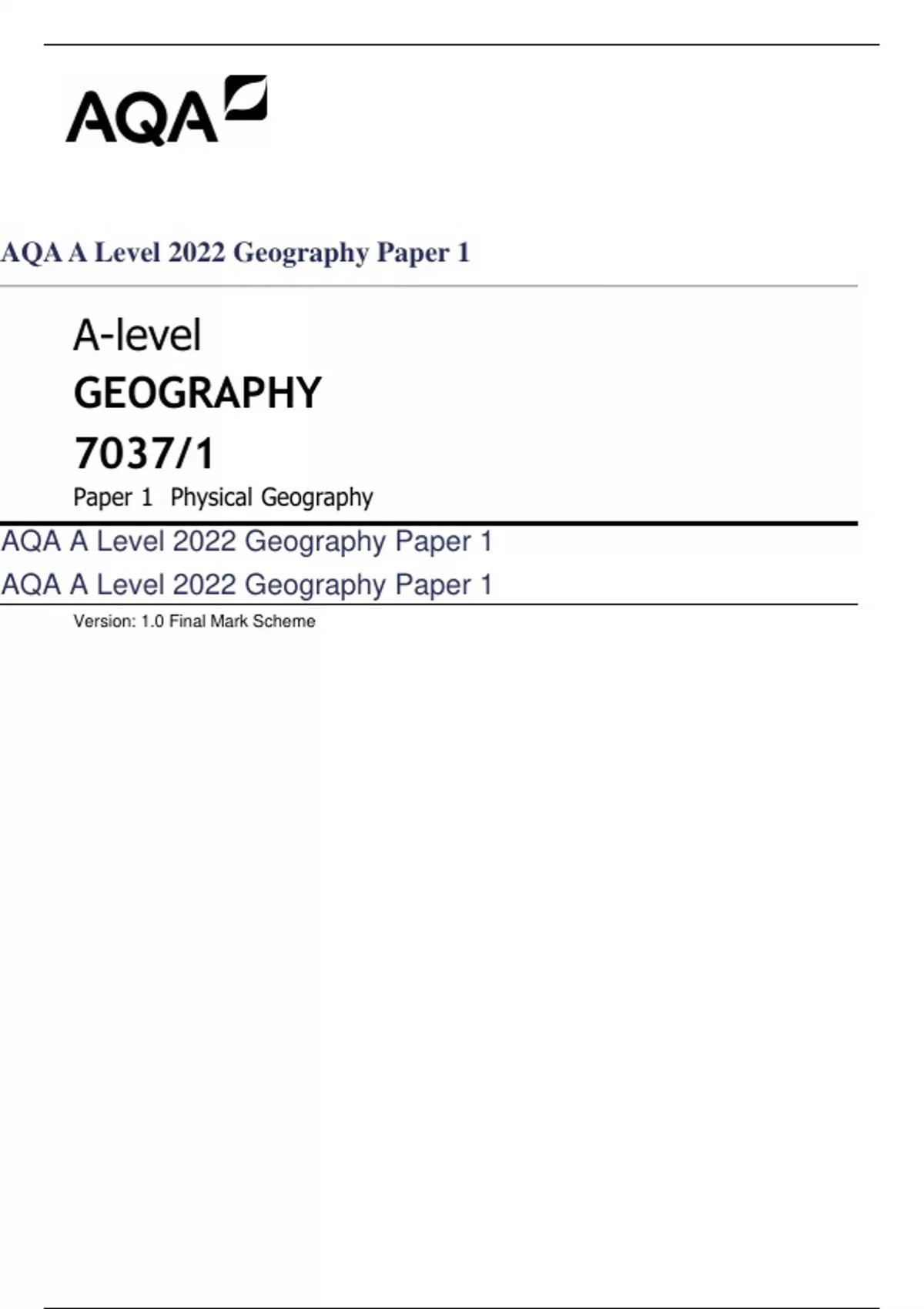 AQA A Level 2022 Geography Paper 1