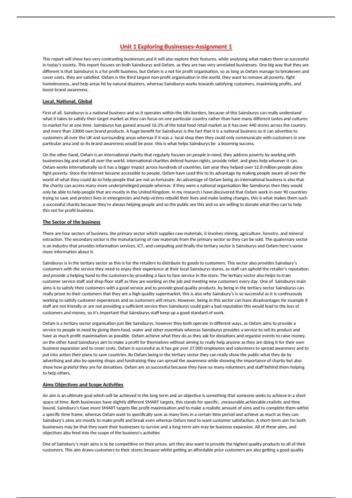 in today’s society. This report focuses on both Sainsburys and Oxfam, as they are two very unrelated businesses. One big way that they are