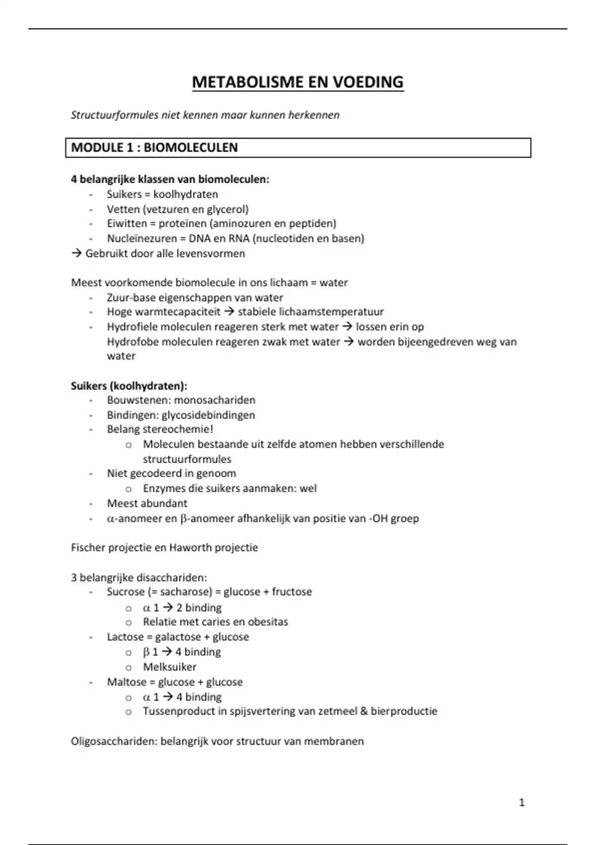 MODULE 1 : BIOMOLECULEN