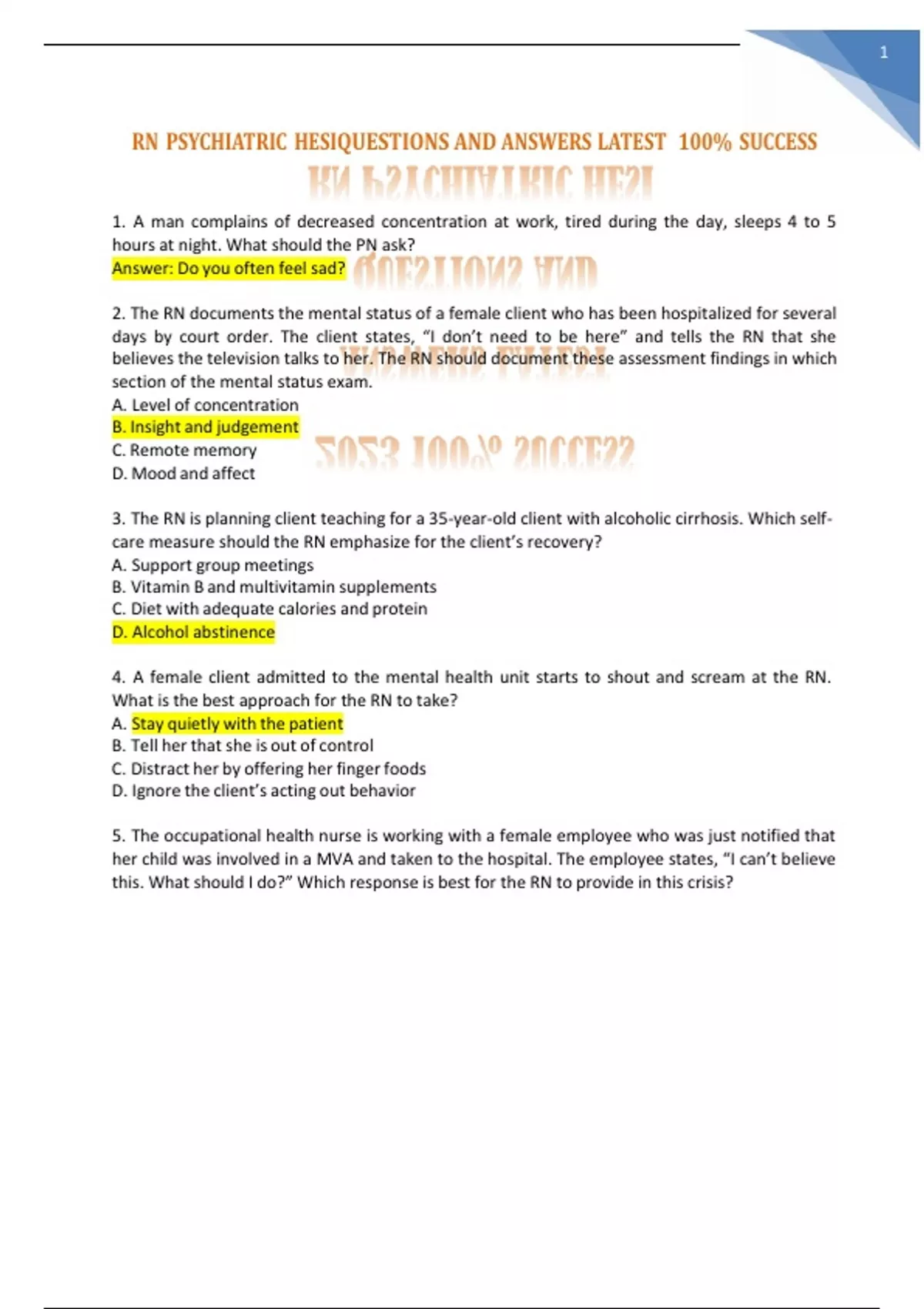 RN PSYCHIATRIC HESI QUESTIONS AND ANSWERS RATED A+/RN PSYCHIATRIC HESI QUESTIONS AND ANSWERS RATED A+/RN PSYCHIATRIC HESI QUESTIONS AND ANSWERS RATED A+