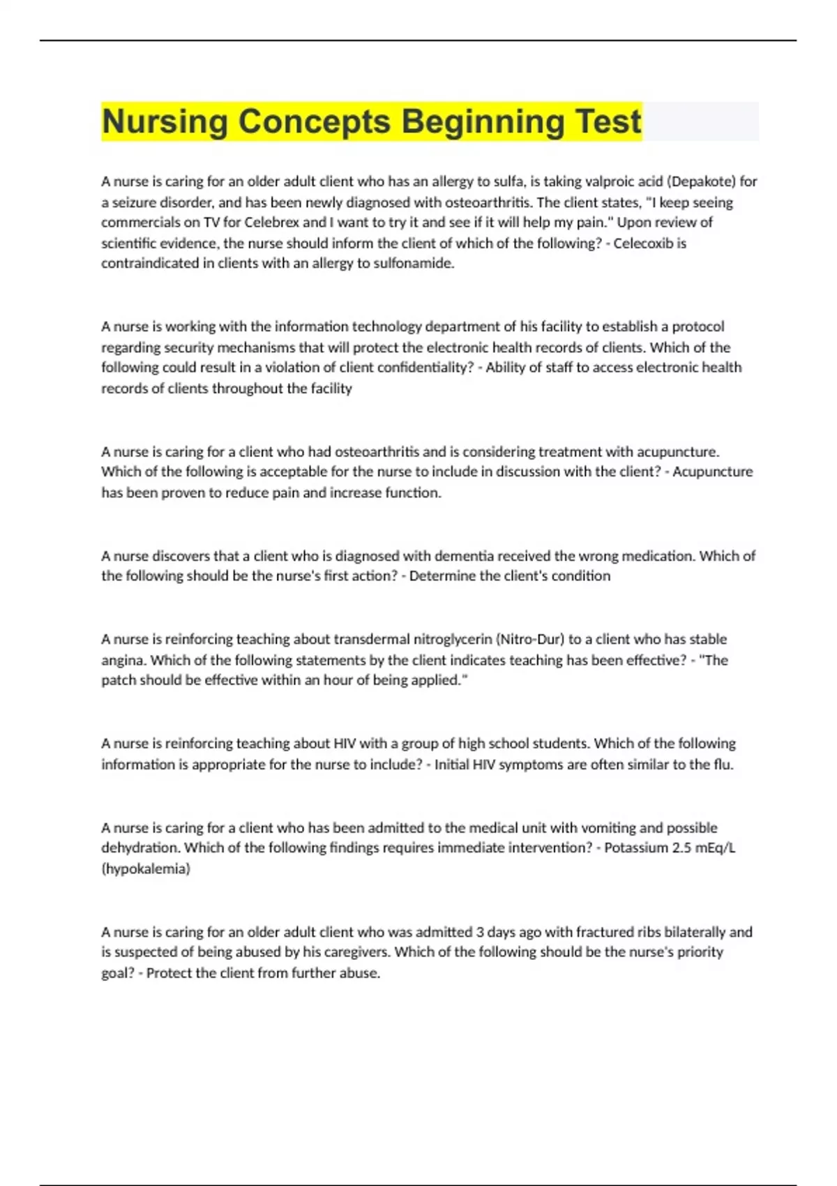 Nursing Concepts Beginning Test.docx